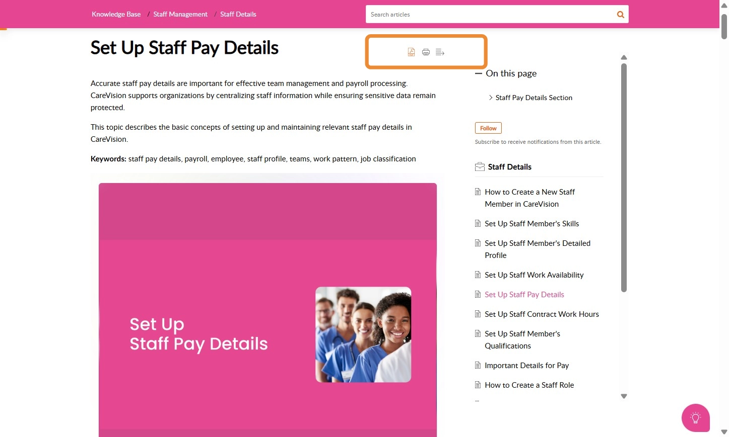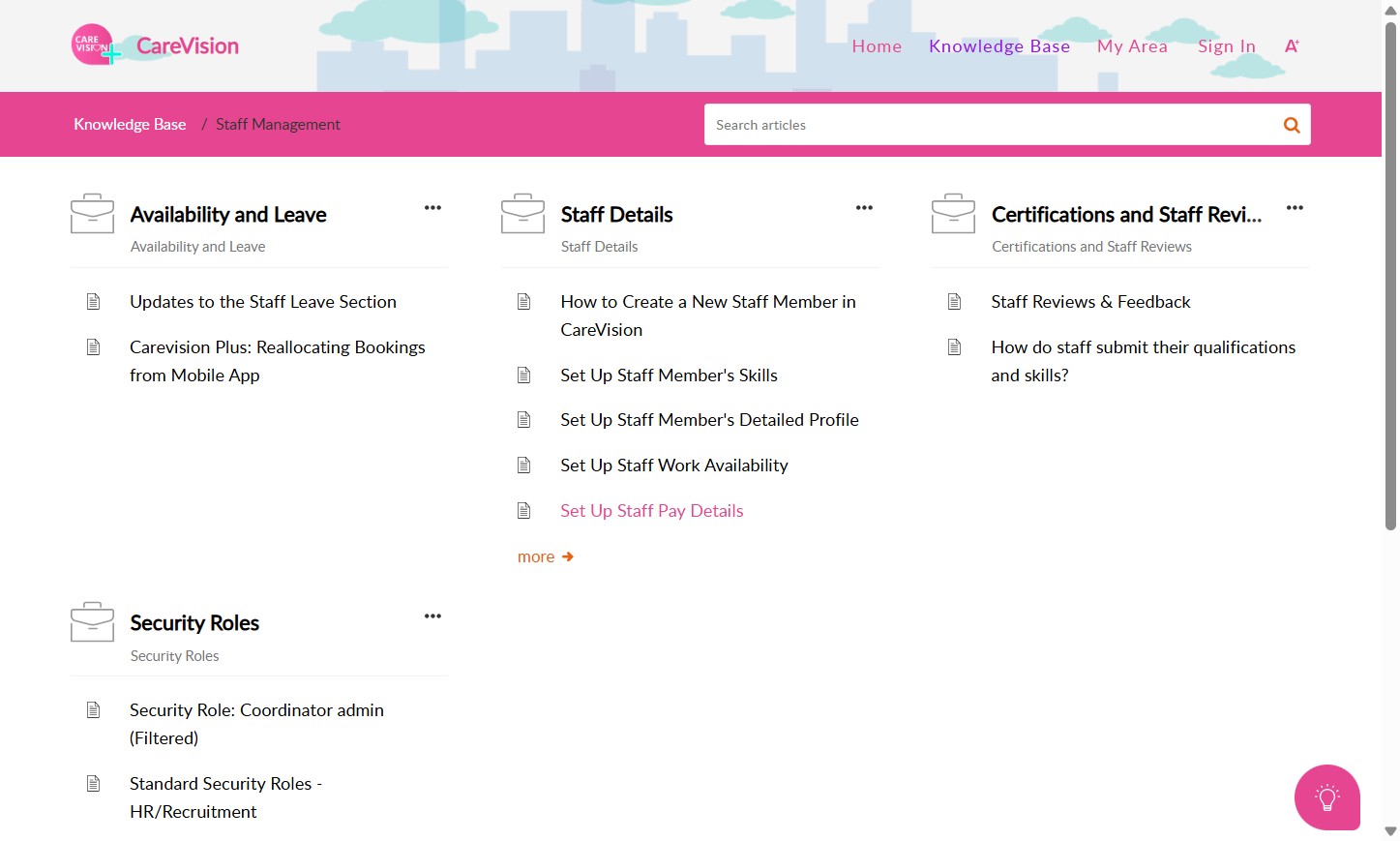 For more information about using the Knowledge Base, contact the CareVision Support Team.
