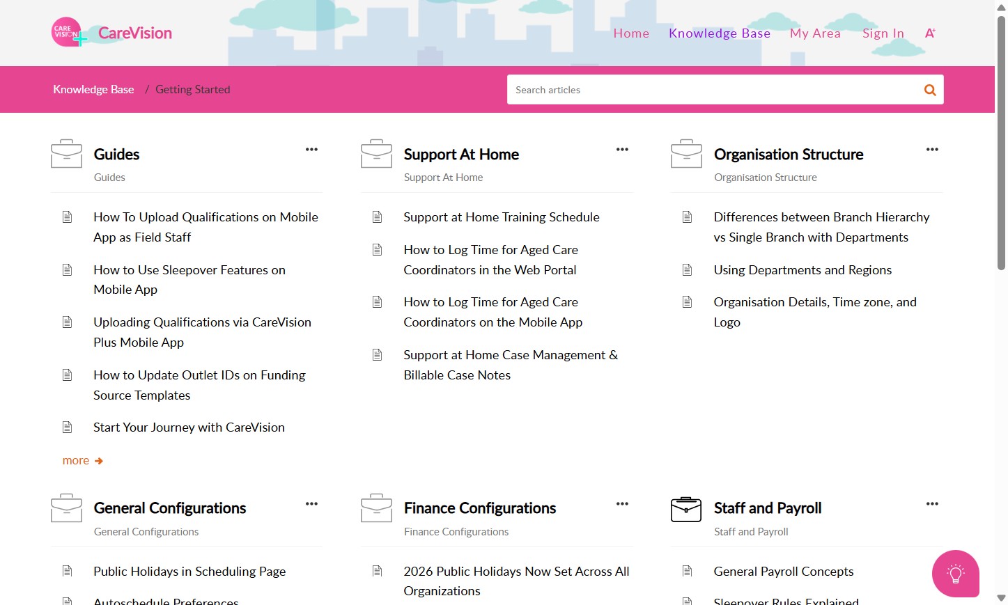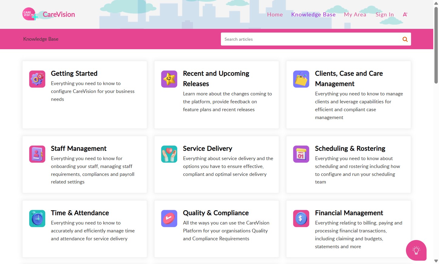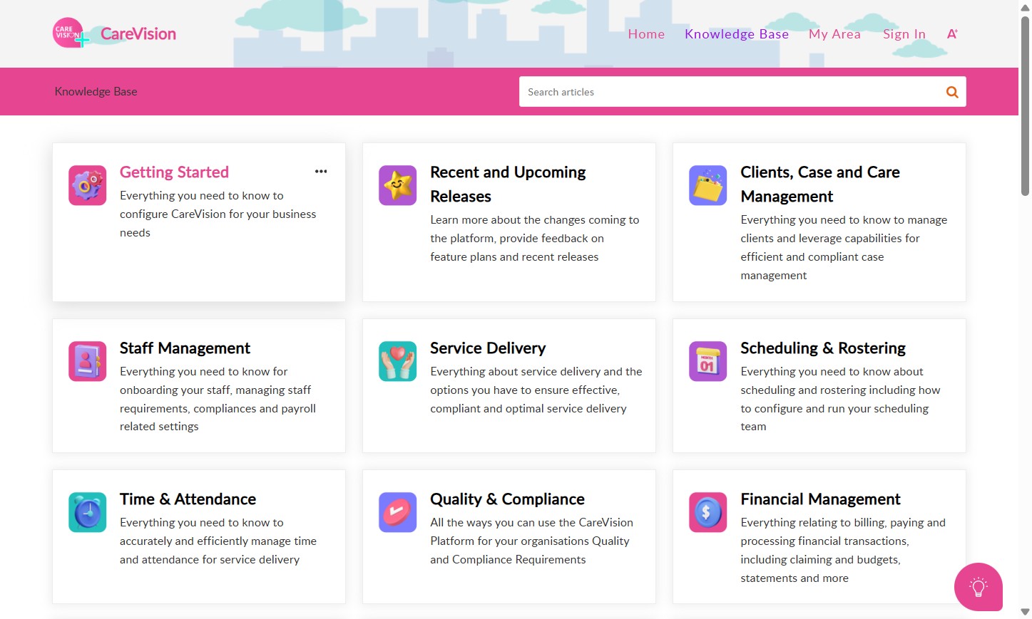 CareVision provides a Knowledge Base where you can find articles, step-by-step guides, troubleshooting resources, and tutorial videos to help you get the most out of CareVision products.