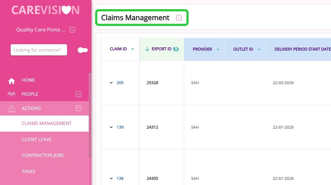 | Service Name | Official service name matching Services Australia and CareVision billing. |