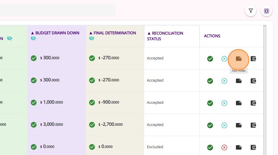 | Budget Drawn Down | Displays the final value where available; otherwise, displays the variance between calculated values. |