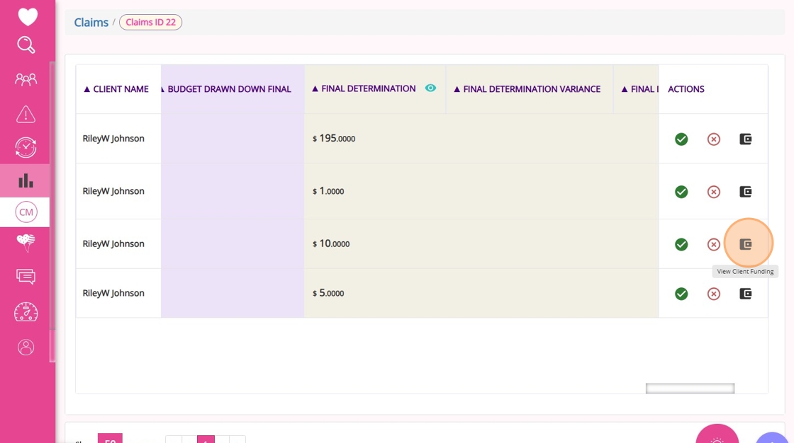 Actions | Options to accept, dispute, or view client funding for the claim line. |