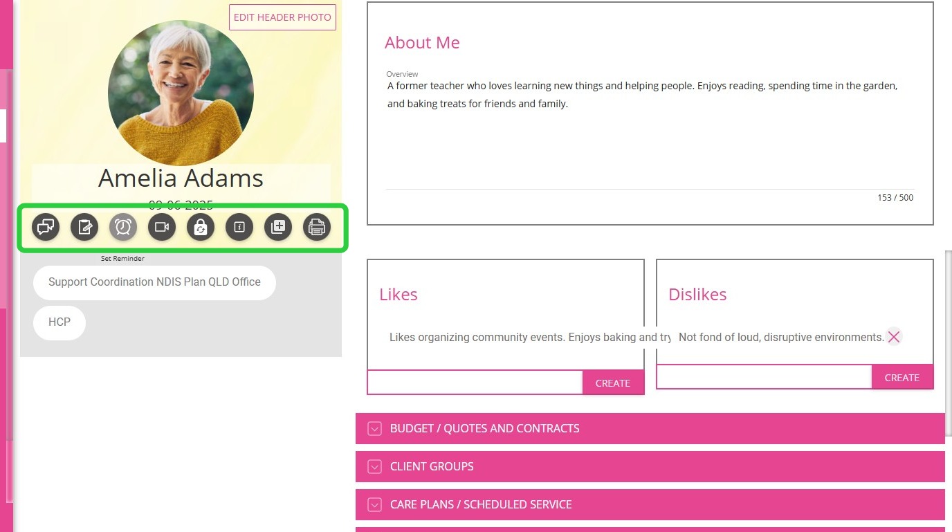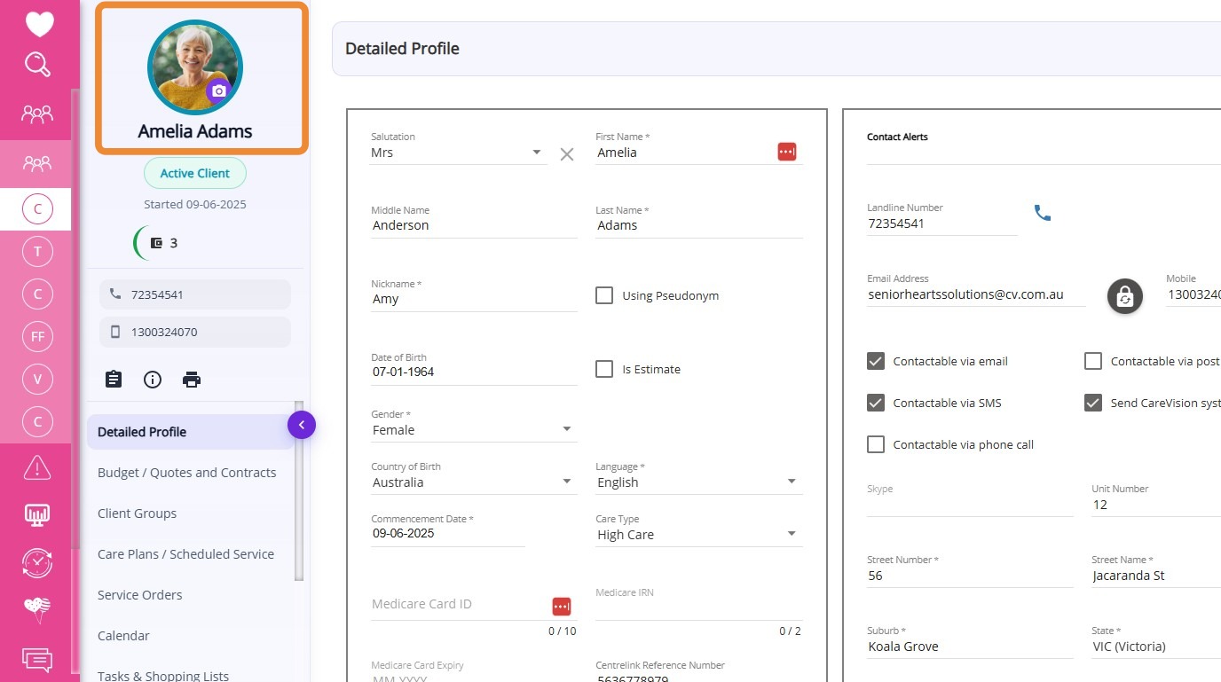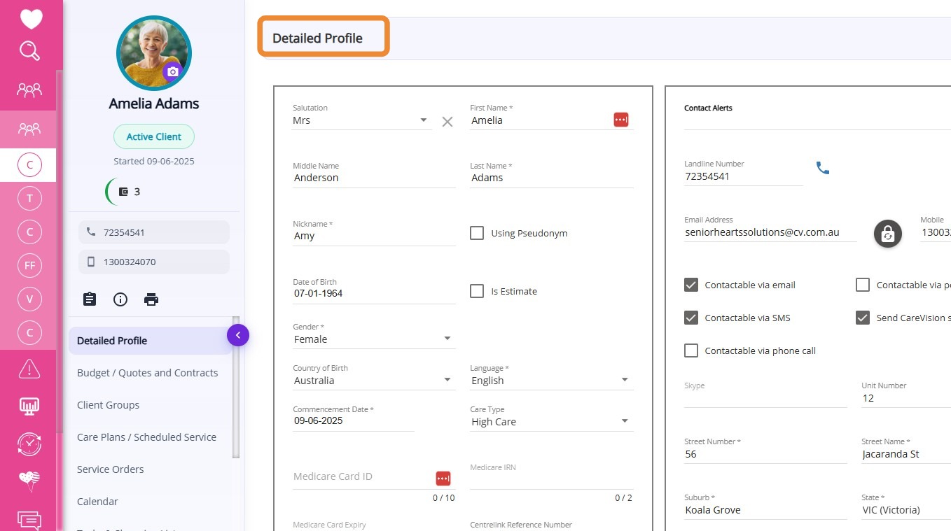 | Contact Alerts | Any important alerts or notes regarding contacting the client. |