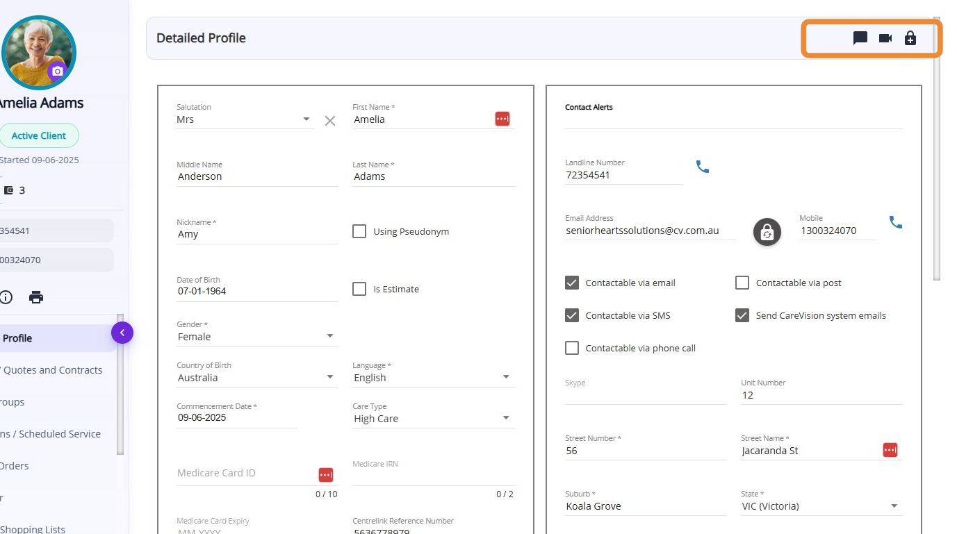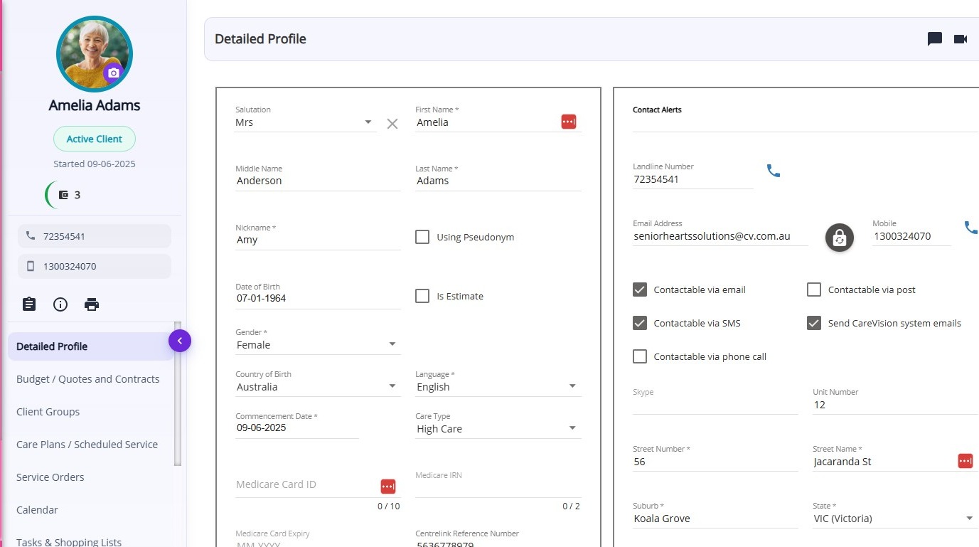 | Send CareVision System Emails | Indicates if the client should receive system-generated emails from CareVision (tickbox). |