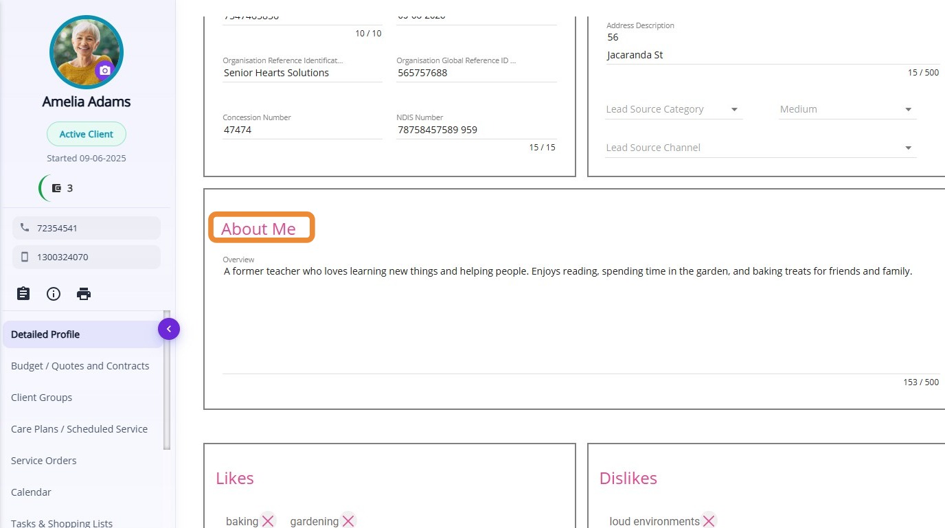 | My Aged Care Reference Number | The client’s unique reference number in the My Aged Care system. |