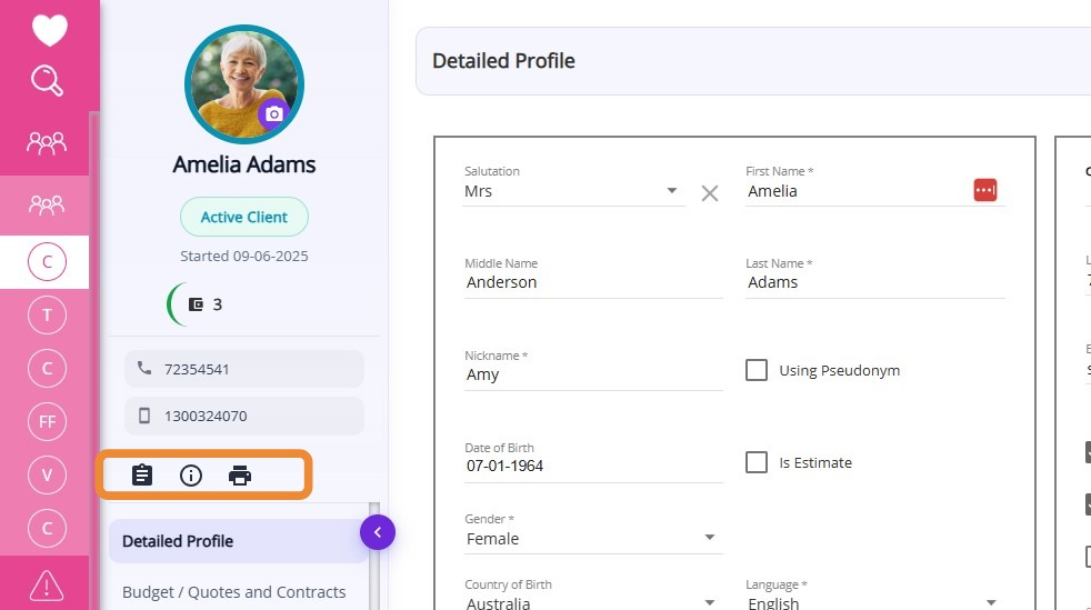 | Date of Birth | The client’s date of birth in DD-MM-YYYY format, which can be selected from a calendar picker. |