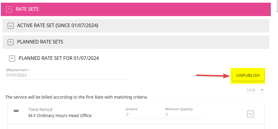 If you changed your mind and need to make further changes on the Planned Rate Set. You can still unpublish them.