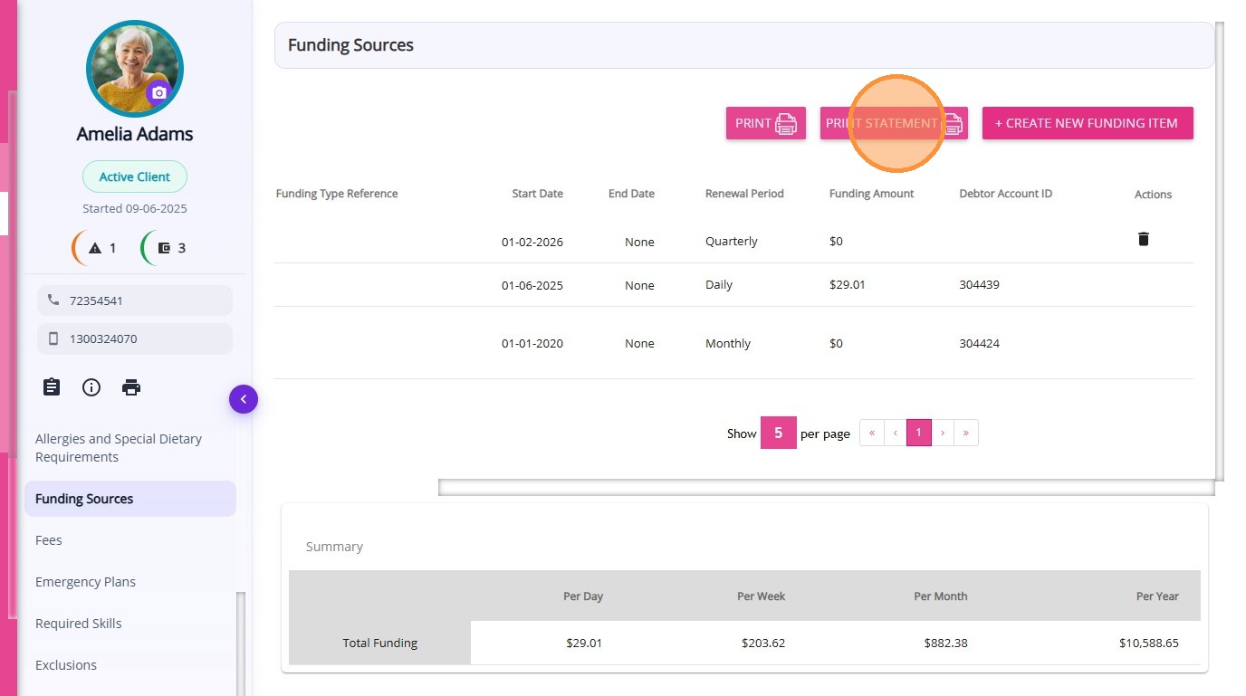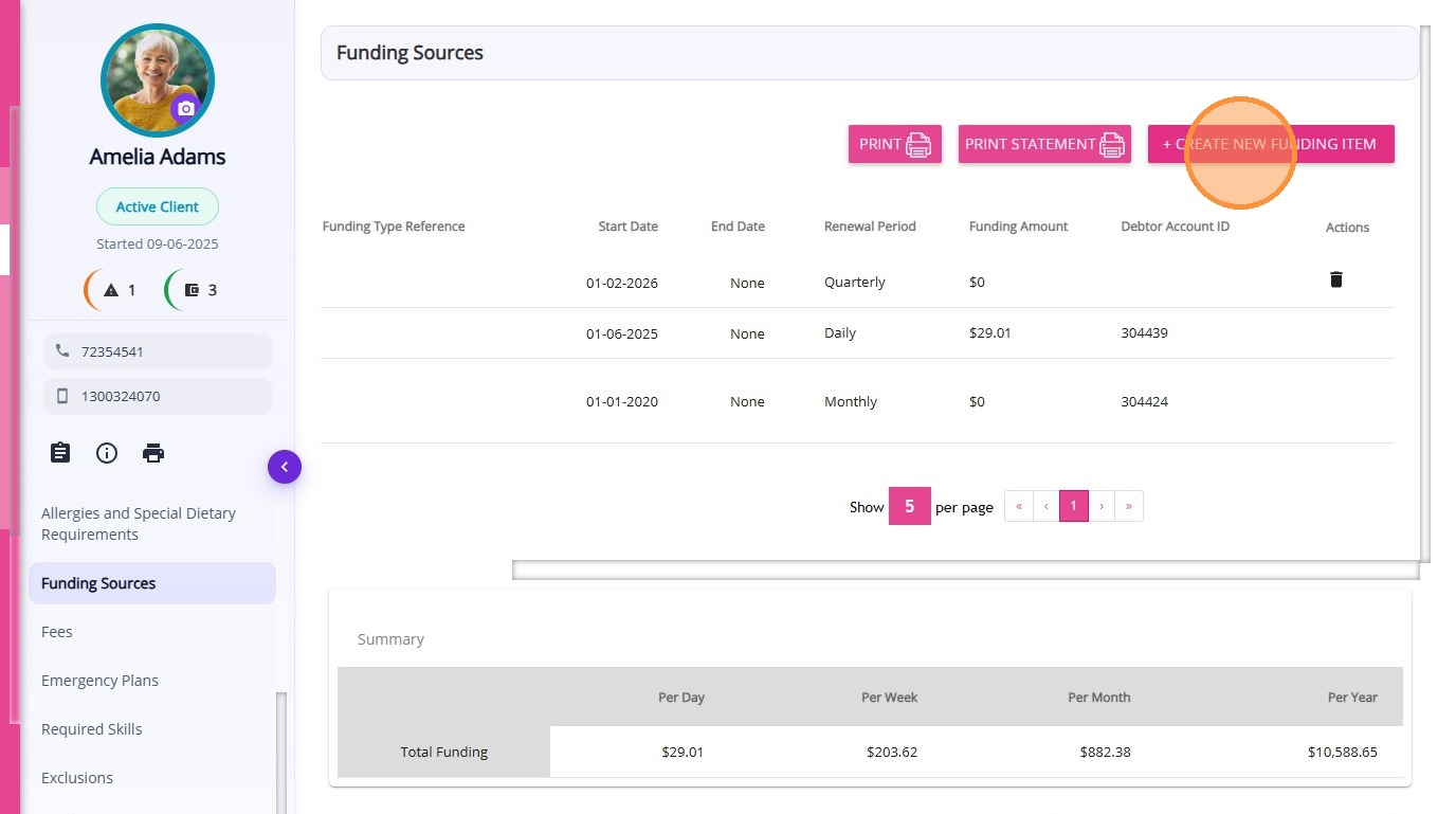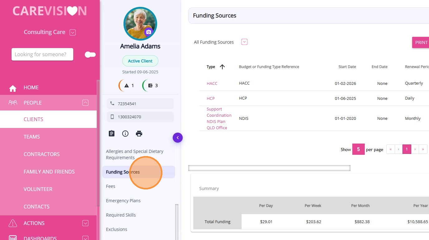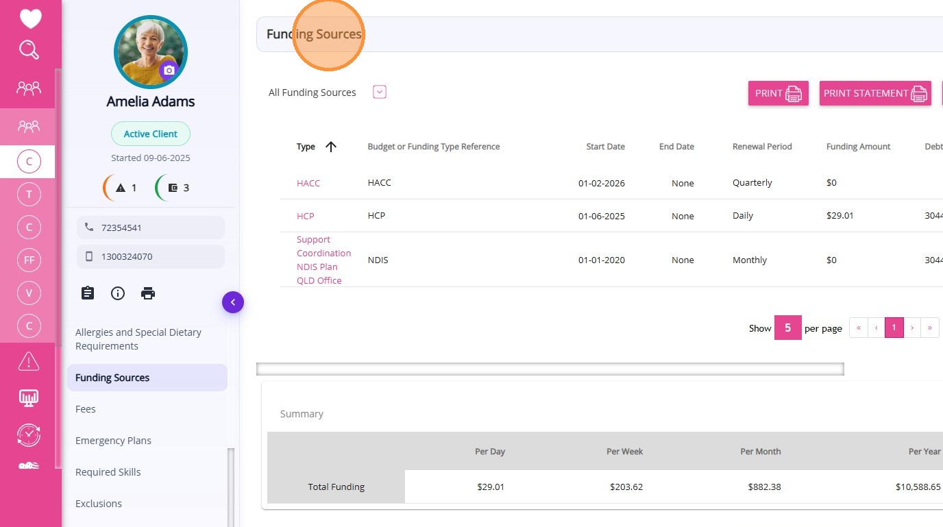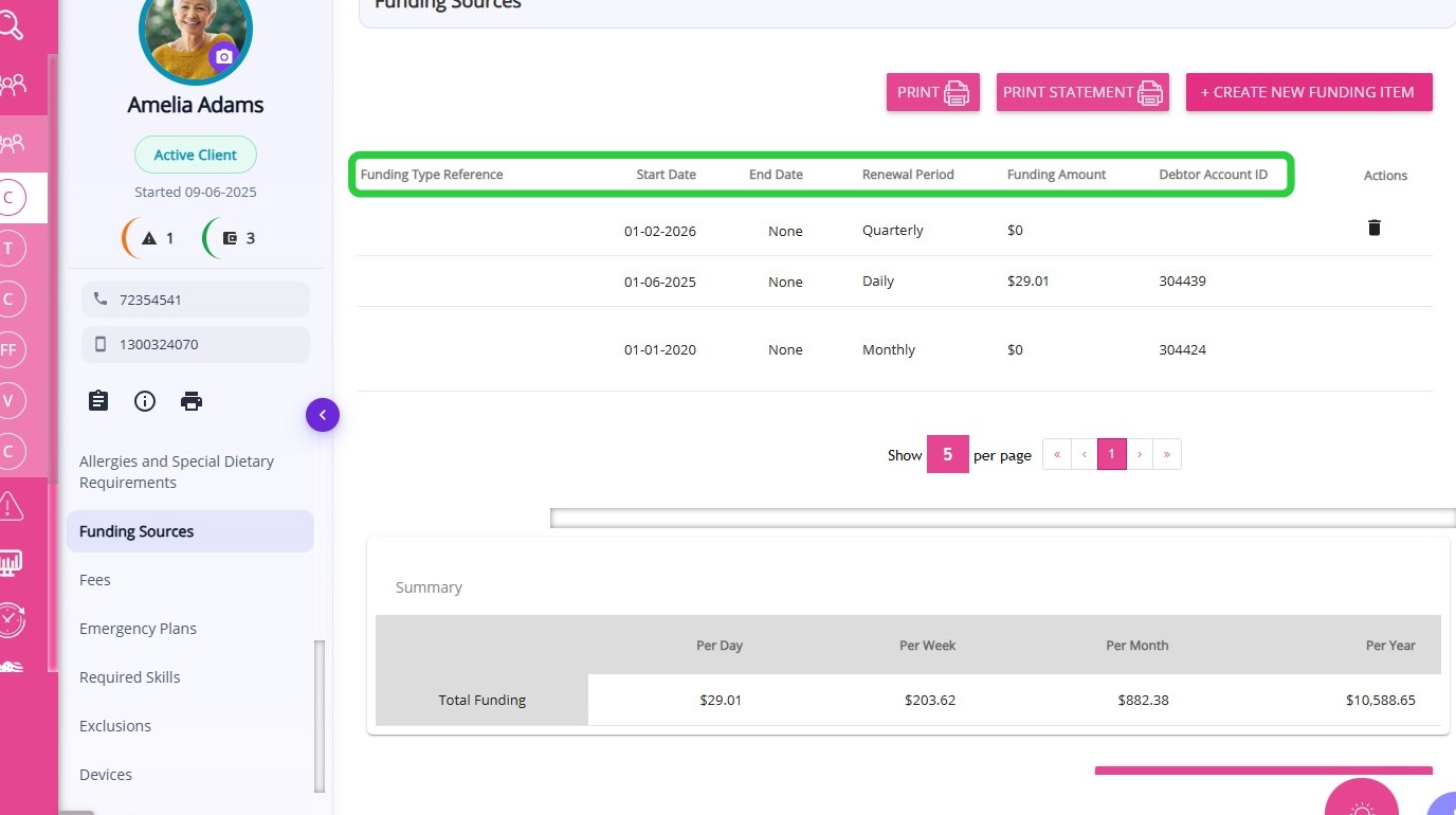Type | The type of funding or budget associated with the client record. |