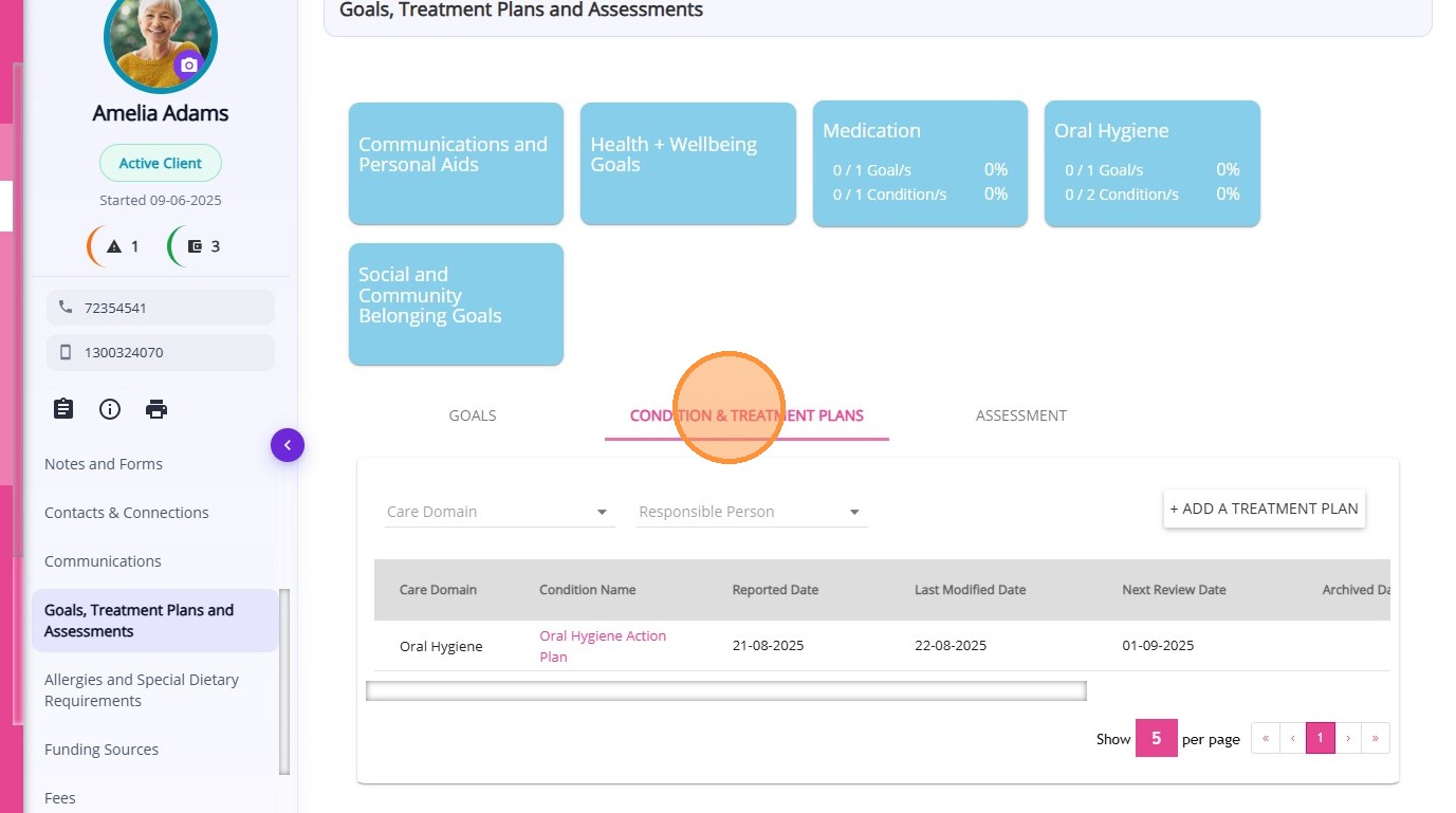 Introduction to Goals, Conditions, and Treatment Plans Keeping track of the client's medical conditions and goals goes hand in hand with standard compliance and upholding the organisation's service standards. It's important to have a conversation ...