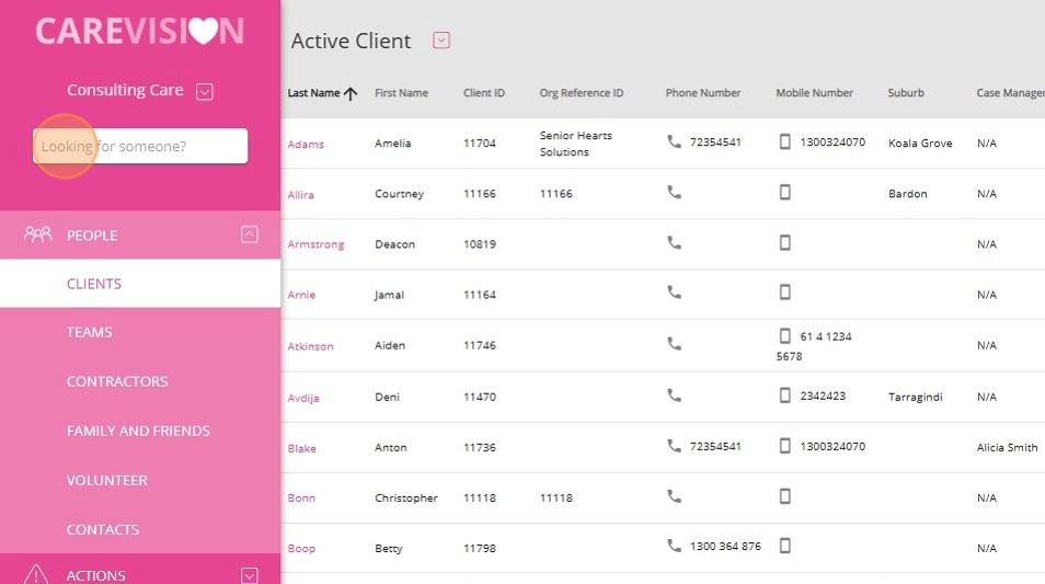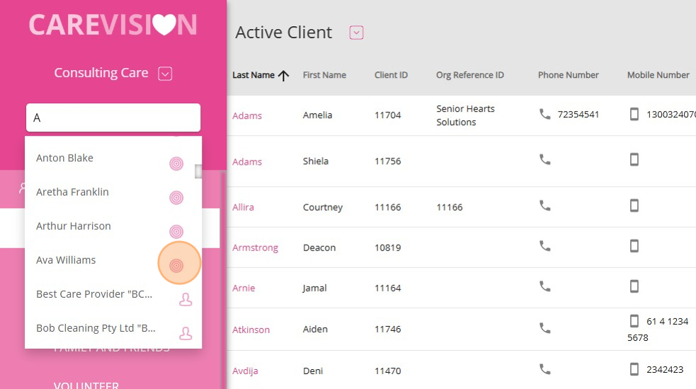 2. From the search results, select the client you want to create a quote for. Clients are identified by a circle (target) icon.