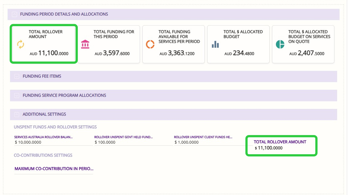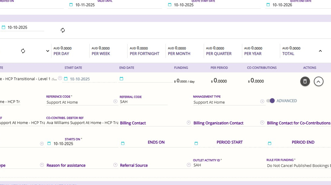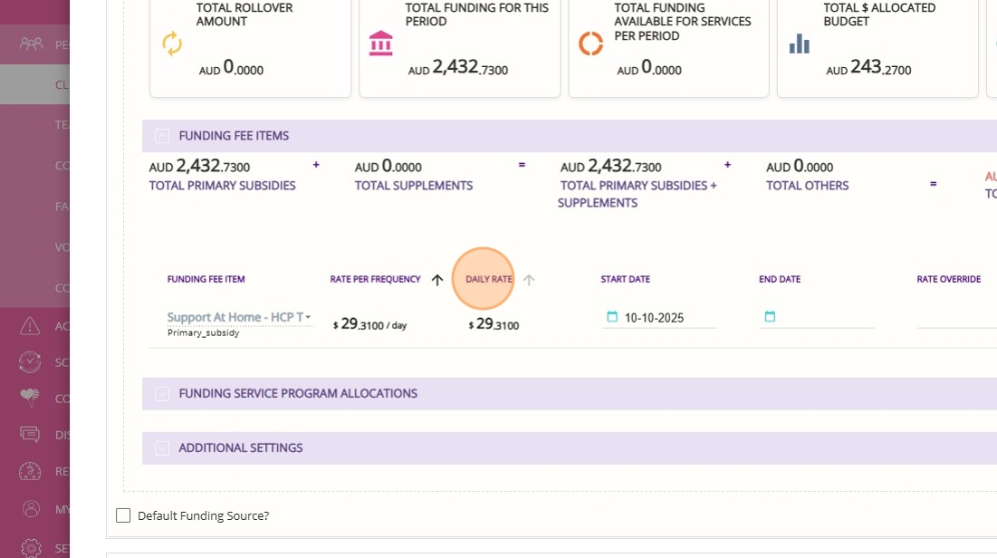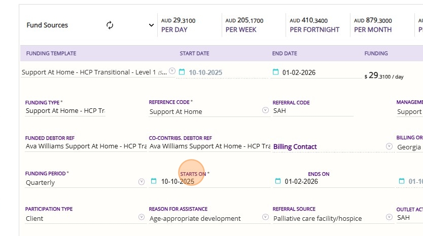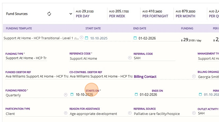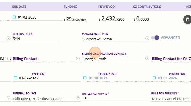 The rules for funding field allows you to set controls and guidelines for what should happen if a client’s funding runs out before the end of the quarter. This new functionality helps providers manage financial risk under Support at Home by letting you define specific actions or restrictions, either at the organization level or for individual client funding.