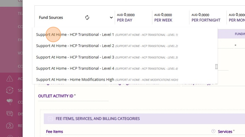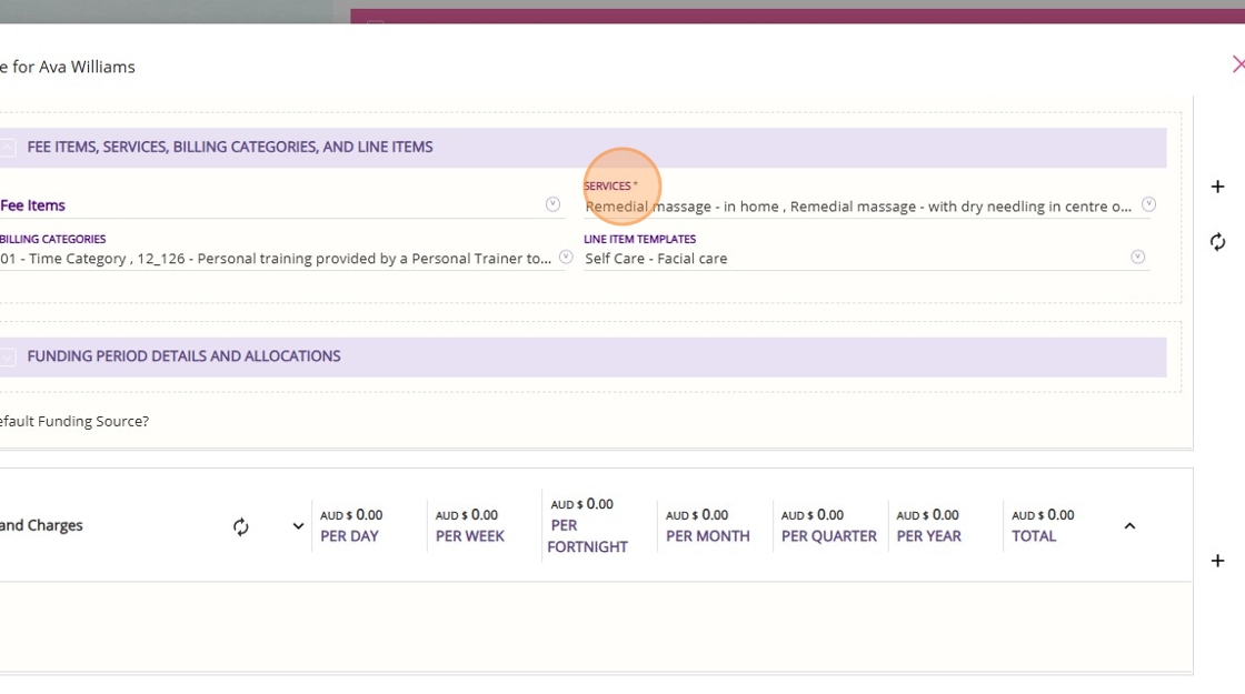 3. In the Services field, you can select the services that are available for the specific type of funding you have added.