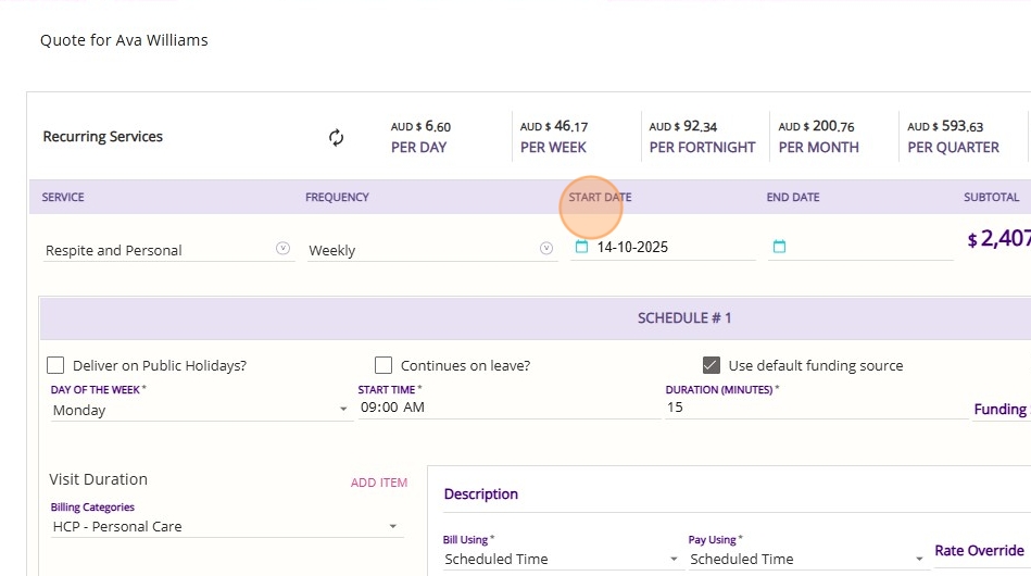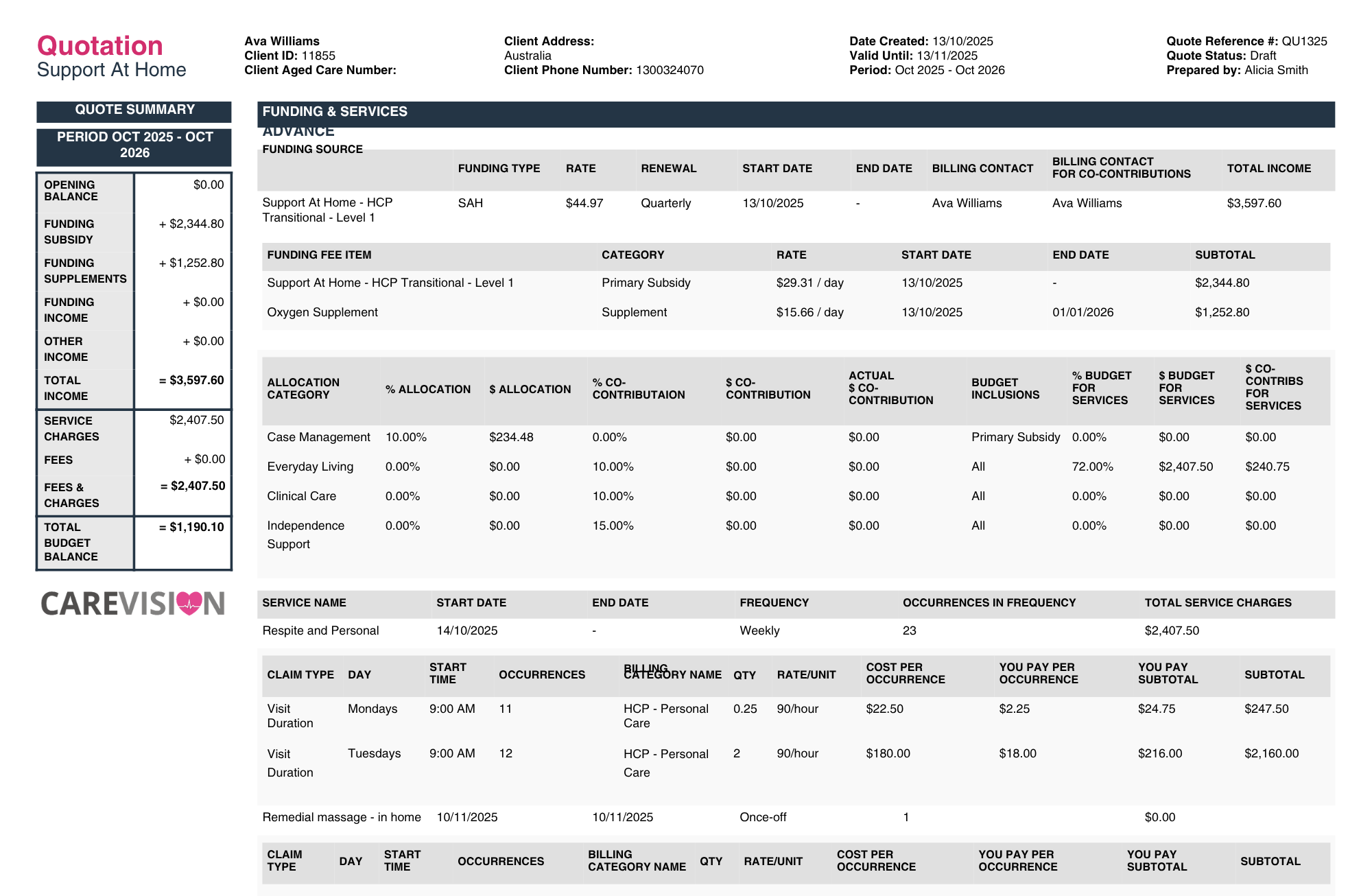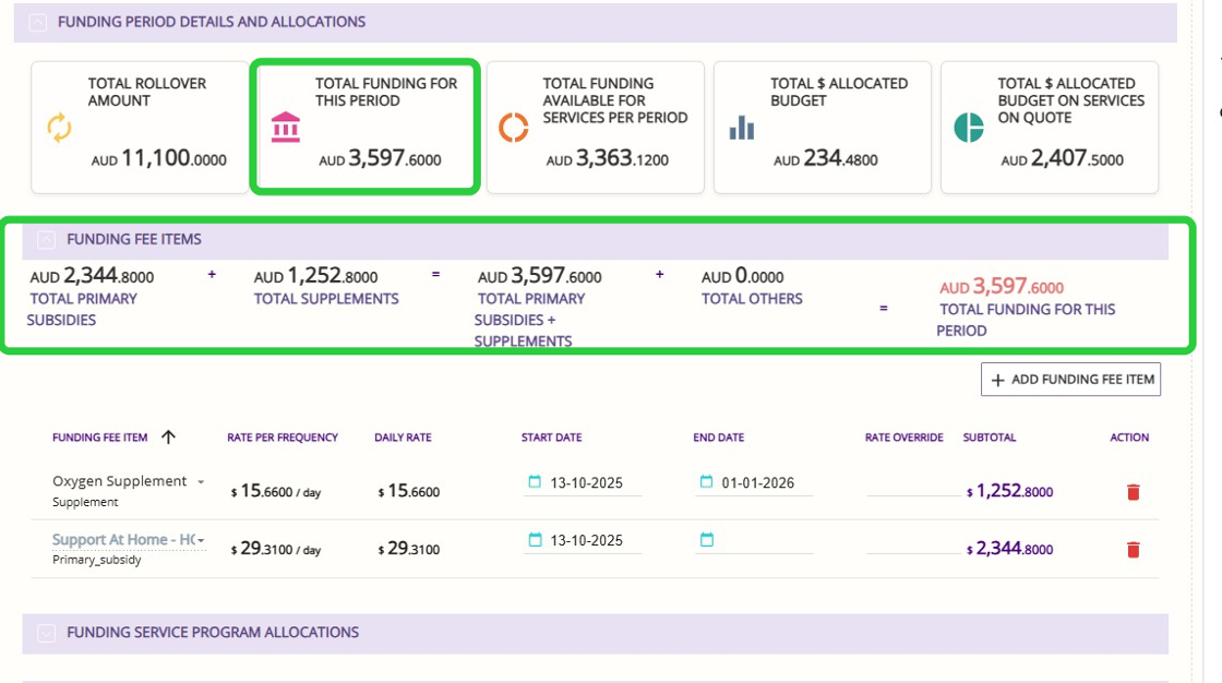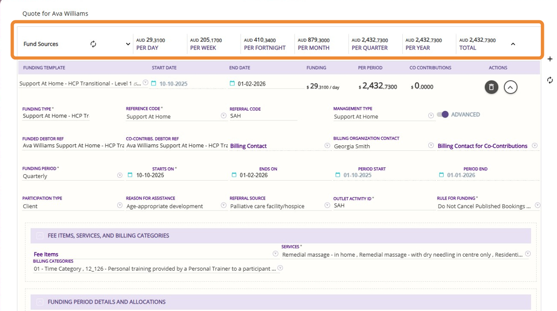 While the overall funding may be calculated using daily or yearly rates, budgets and spending are tracked and controlled within each quarter. This ensures that clients do not exceed the allocated budget for any given quarter, even if the total funding covers a longer period.
