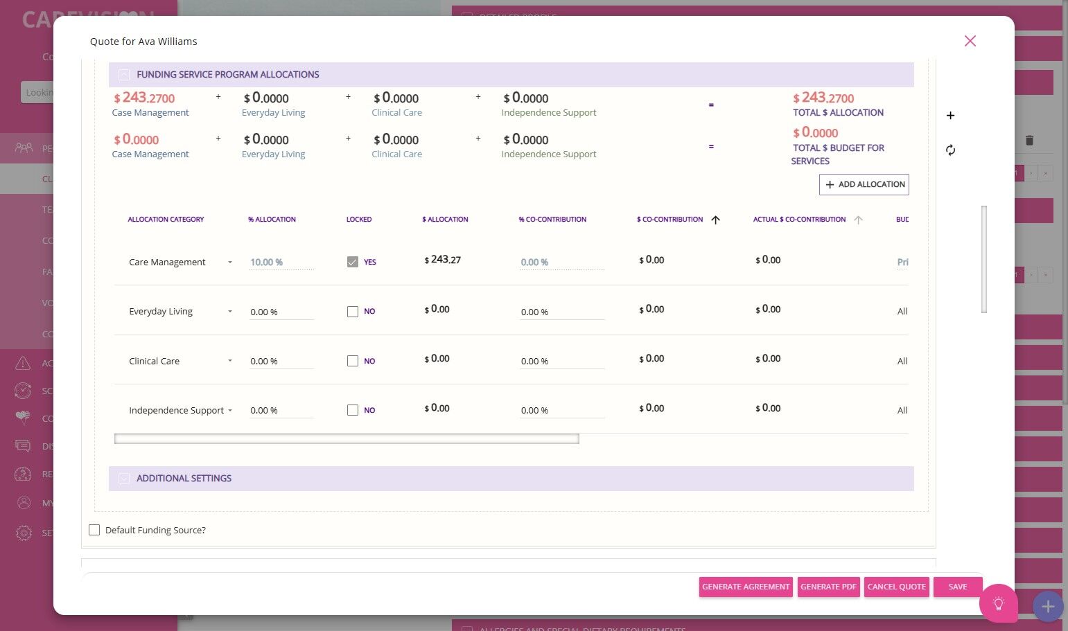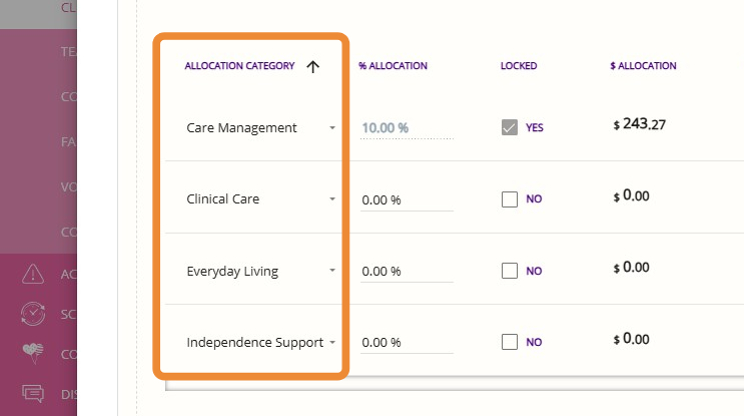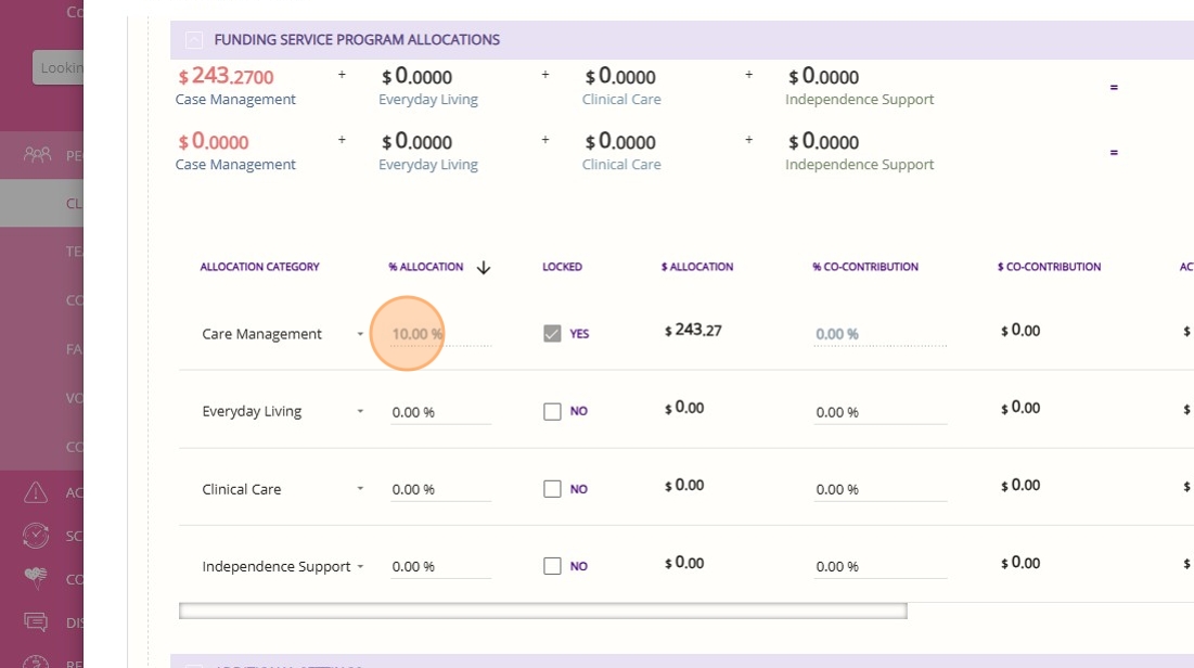 5. Care Management is set to 10% by default and cannot be changed at the client level.