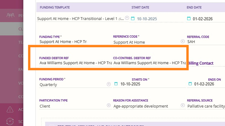 This field designates a separate account for invoicing the client’s co-contribution amounts. It is used to identify which account should receive invoices for the client’s share of funding, separate from the government-funded portion.