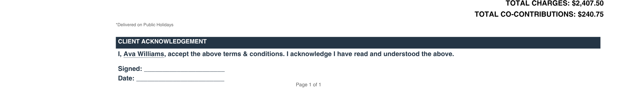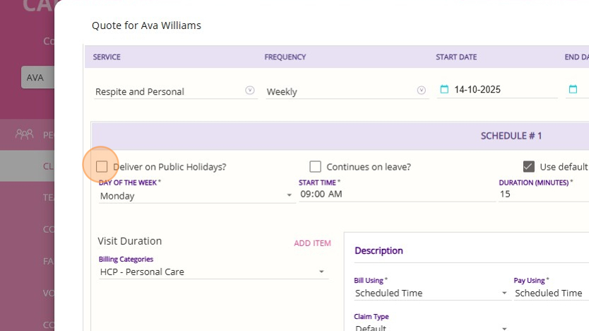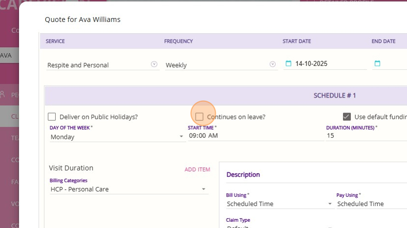 By default, this is set to the client’s first name, last name, and funding type. This ensures that payments from the government are directed to the correct account. Your organization may have specific naming conventions for this field based on your accounting system.