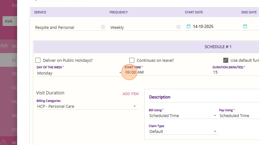 Alternatively, click Add Schedule to create a new schedule. Use this option if you need to enter different information for the service on different days