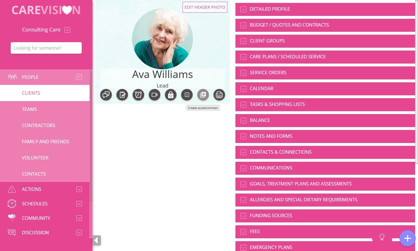 3. Below the client’s profile, click the plus icon, which represents Create Quote/Contract.