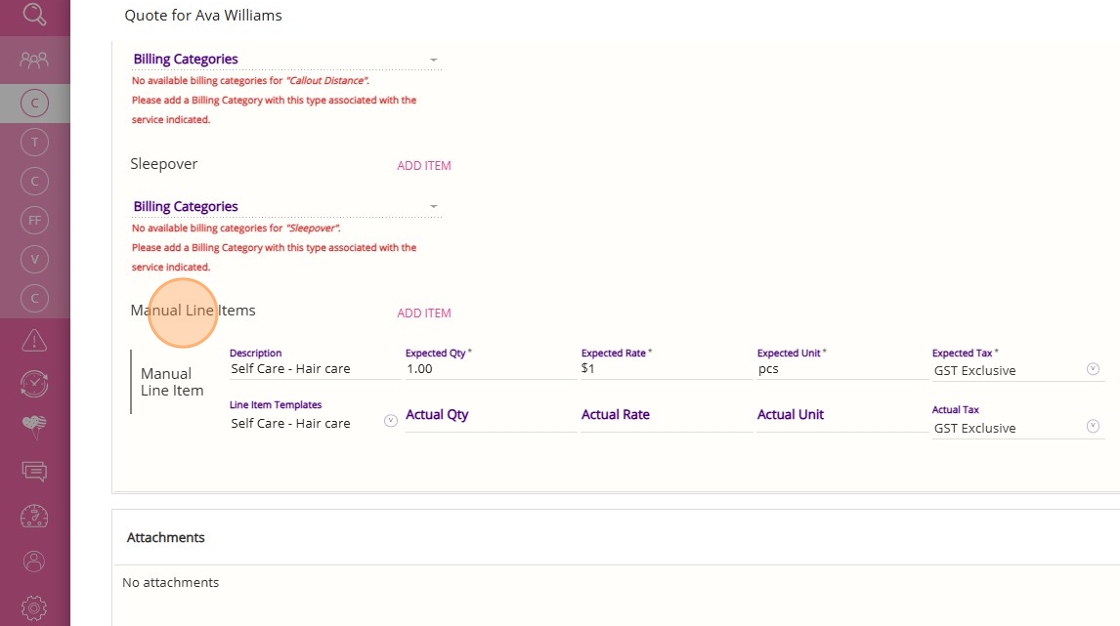 6. We recommend that you use line item templates rather than creating manual entries. This is to ensure all necessary information is included and to prevent issues downstream in the claiming process.