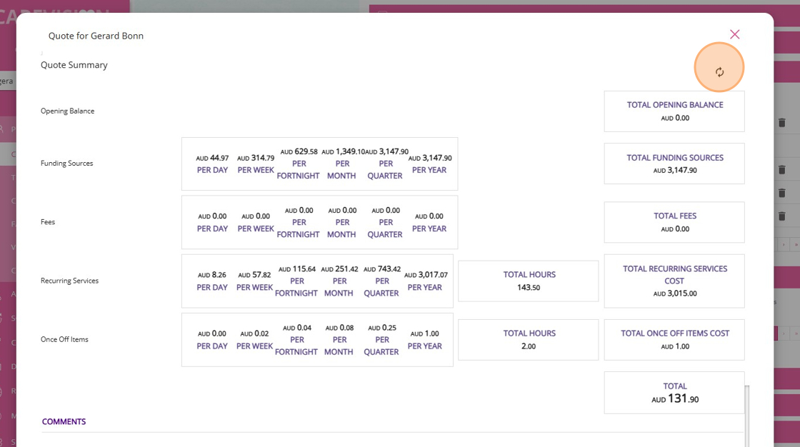 - Click this button to recalculate the quote.