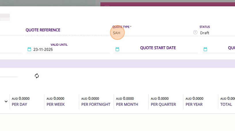 - Set the Quote Type to SAH.