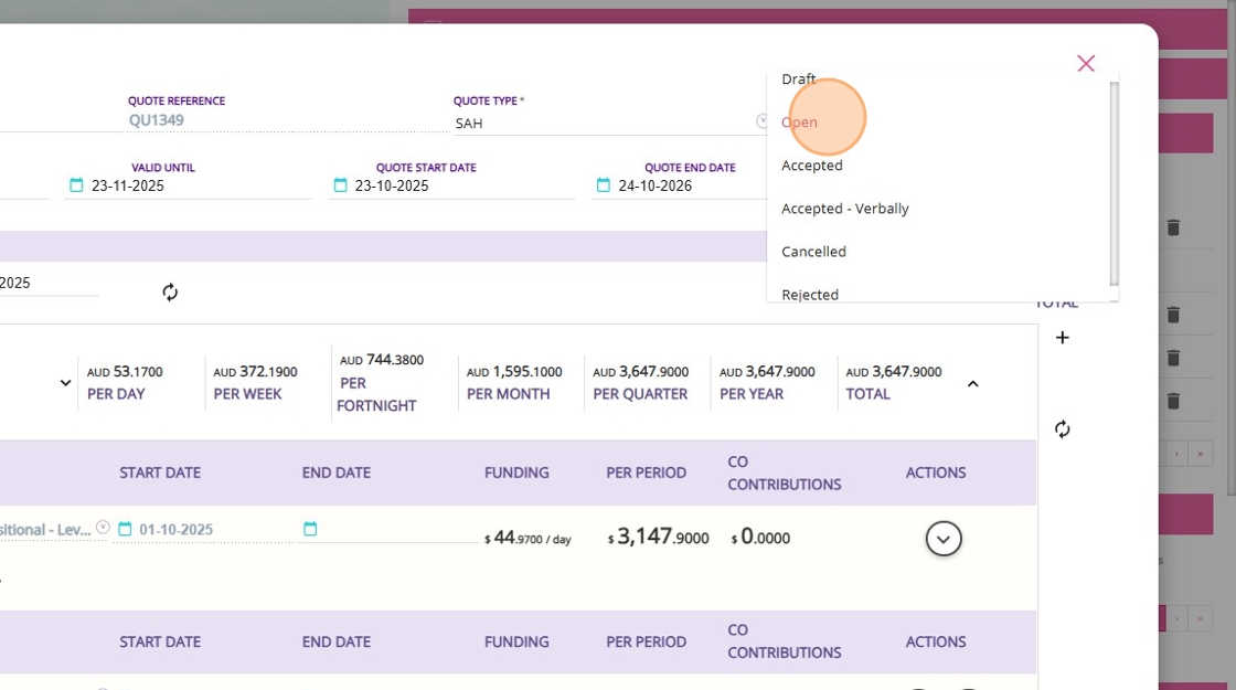 - Change Status to Open: Once the quote is ready for the client, update its status to Open.