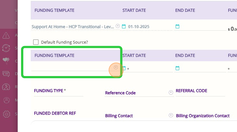 - Click the Funding Template dropdown to open the selection menu.