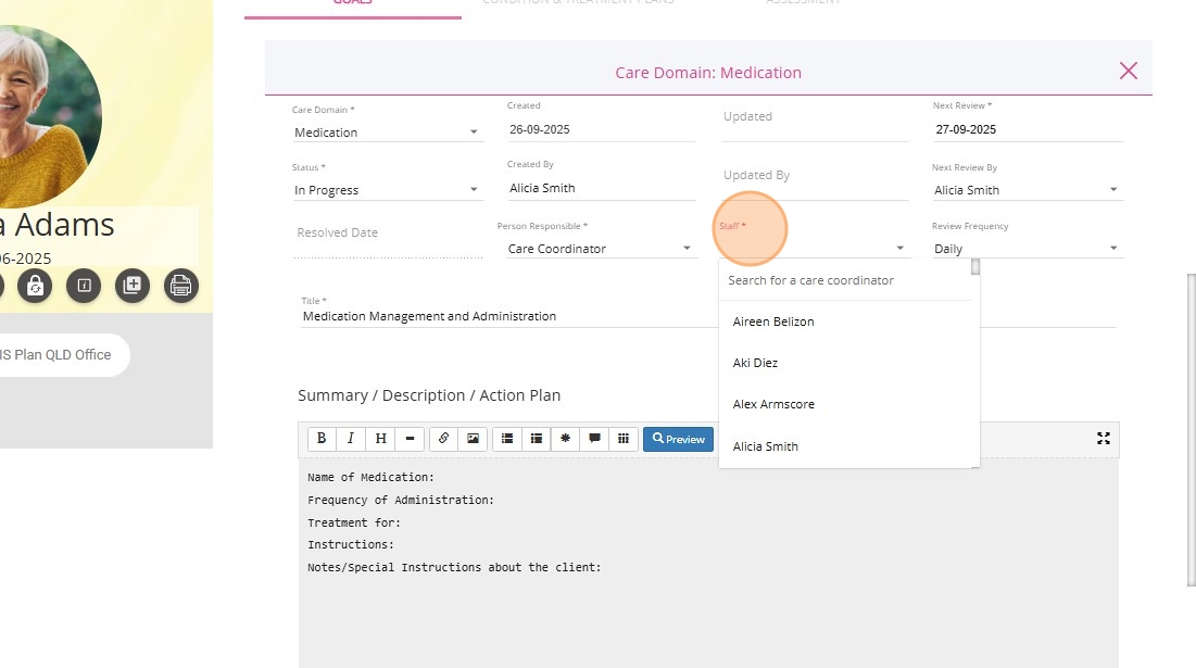 Keywords: how to create client goals, treatment plans, client assessments, carevision portal, care plan services, trackable, health goal tracking, client record management, aged care documentation, disability support planning