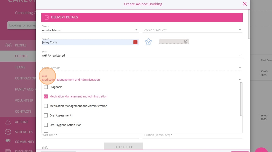 Related Services | Select the services that are directly linked to the goal to ensure care activities are aligned with the client’s goals. When you link services to a goal, you can track progress and make sure your care supports achieving that goal. When creating an ad hoc booking, you can associate it with a specific goal in the Goal field, allowing outcomes to be tracked against that goal. Tick all services that apply. |
