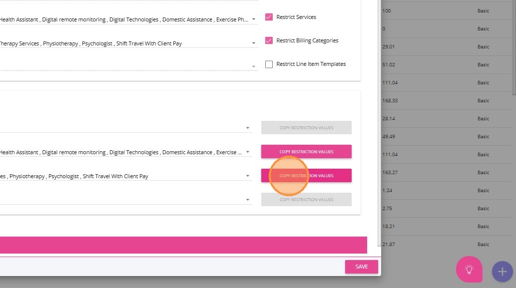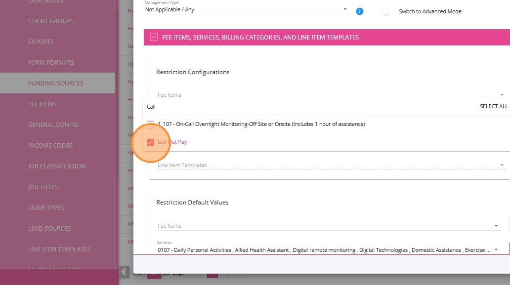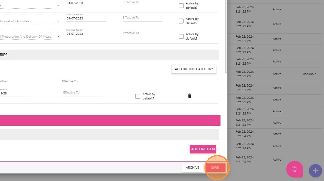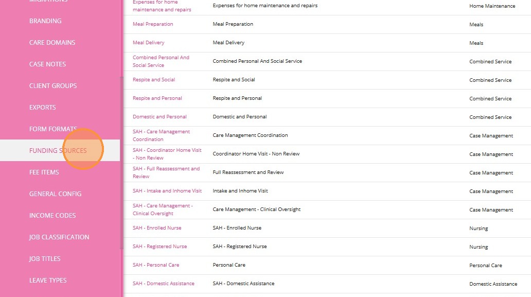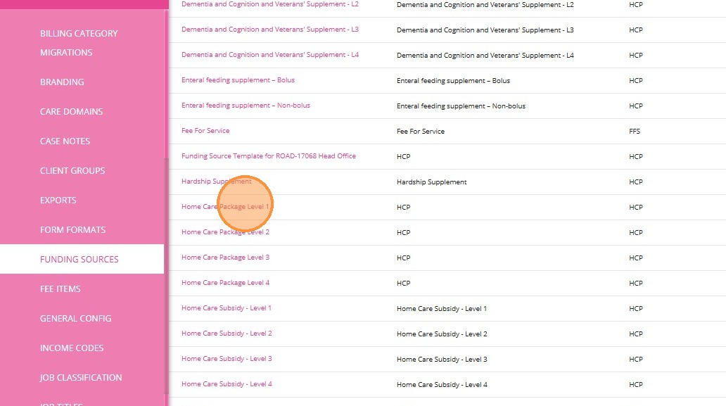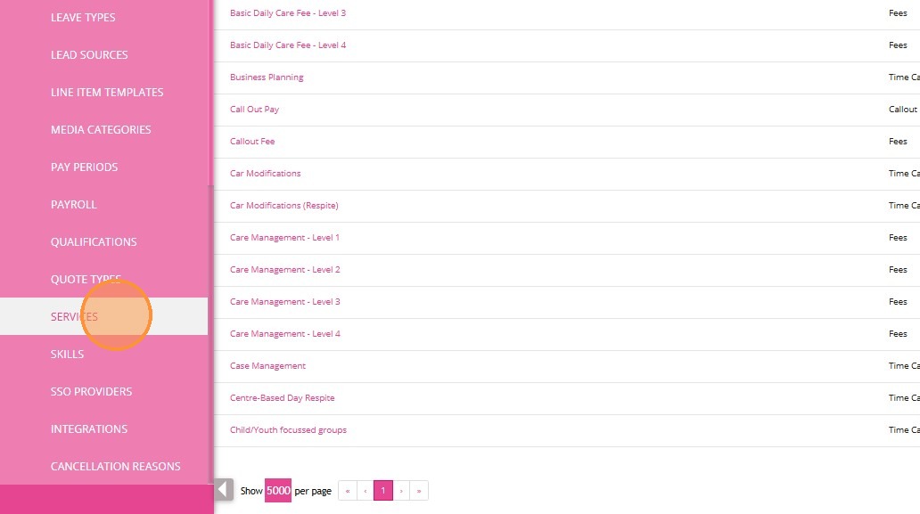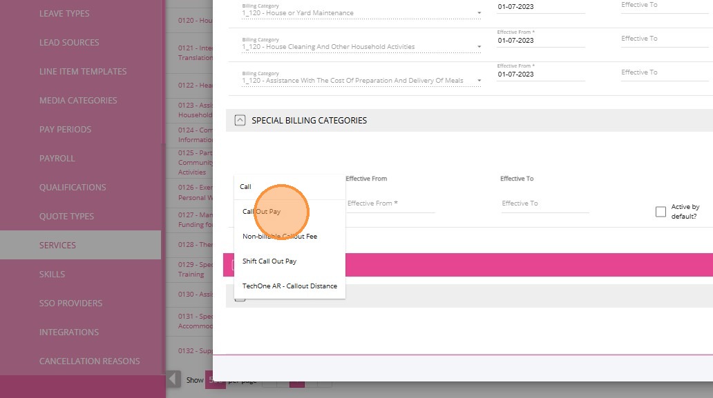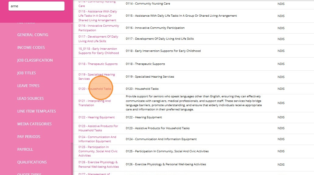 2. Find the relevant service to which you want to link the Callout Distance billing category. In this example, 0120-Household Tasks service is selected.