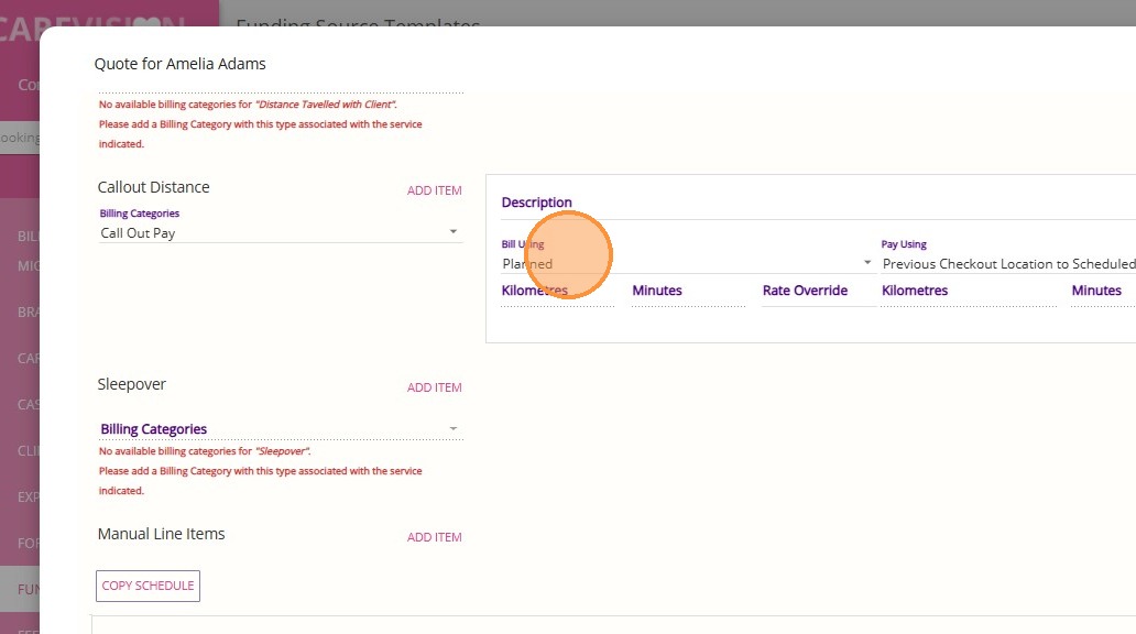 9. Before accepting the quote, change the Bill Using field to Planned.