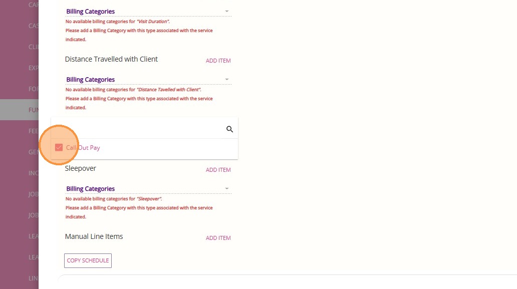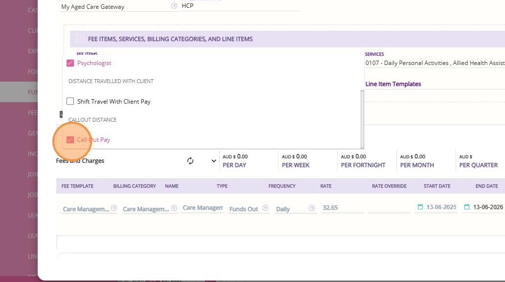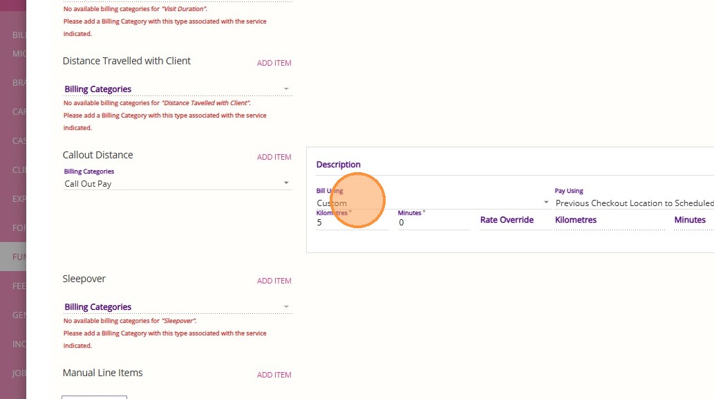 7. Select the Callout Fee billing category and click Add Item.