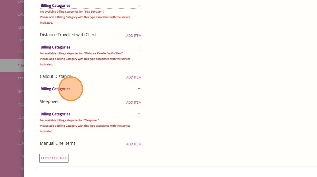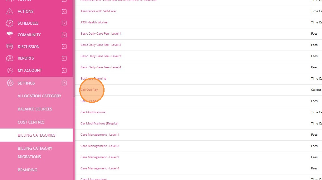 1. In the left navigation pane, go to Settings > Billing Categories.