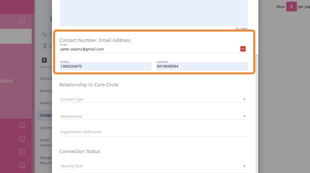 9. Set the Relationship field to the appropriate carer’s relationship to the care recipient.