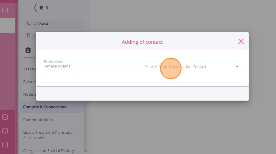 3. In the Search from Organisation Contact bar, type the name of the contact you want to add.