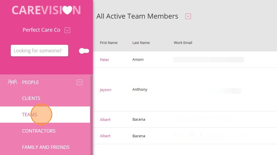1. Go to the side menu and click People > Teams.