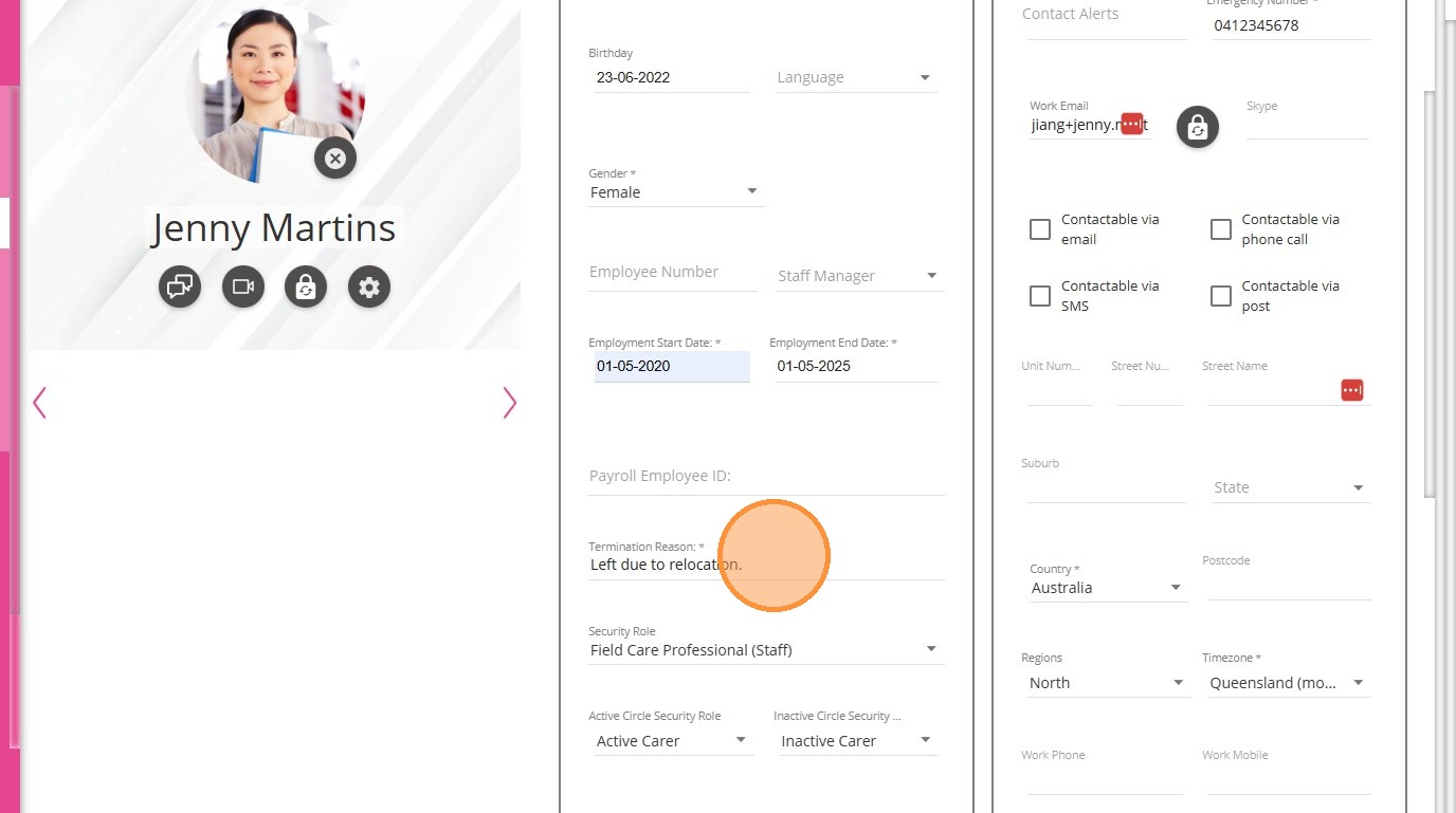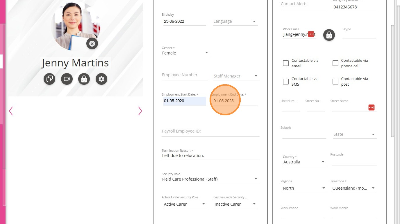 7. Go to the staff member’s profile and remove the employment end date.