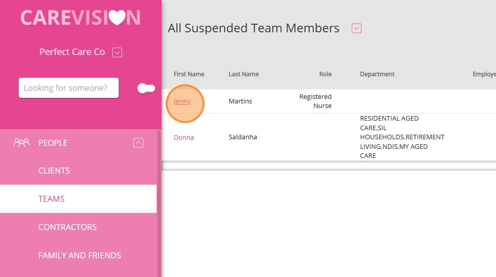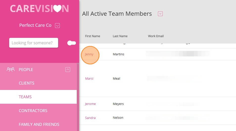 3. Find and select the staff member’s first name. In this example, Jenny is selected.