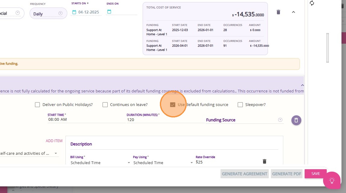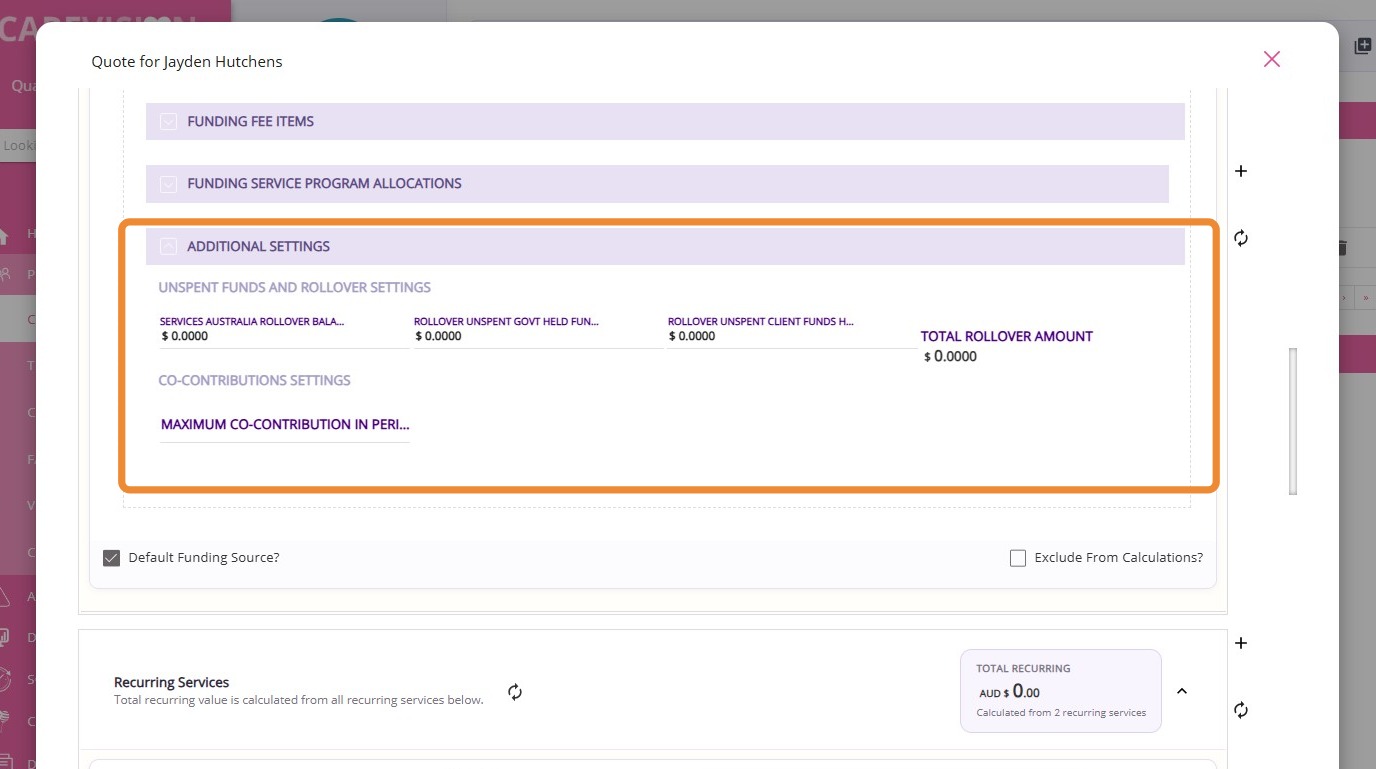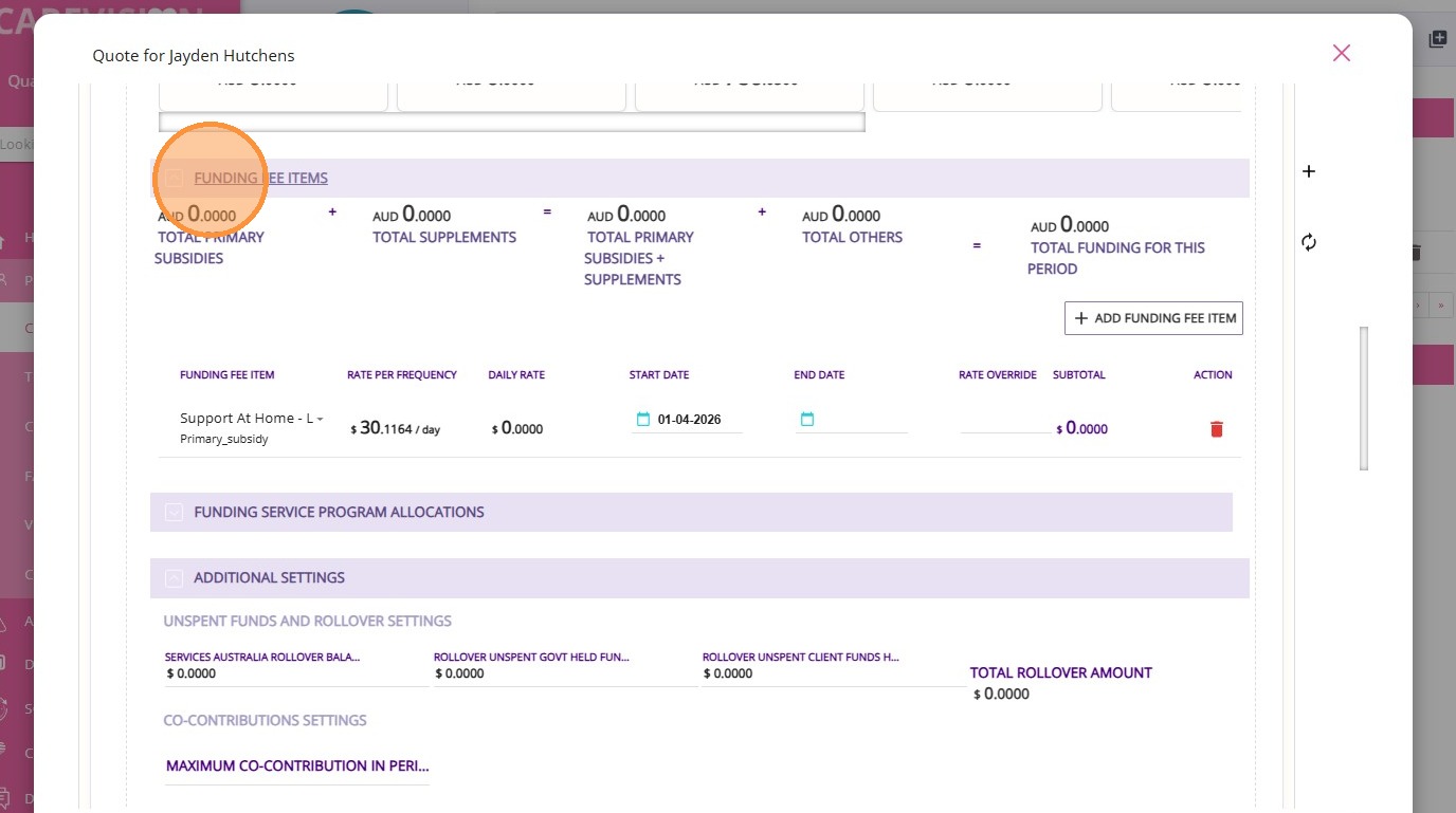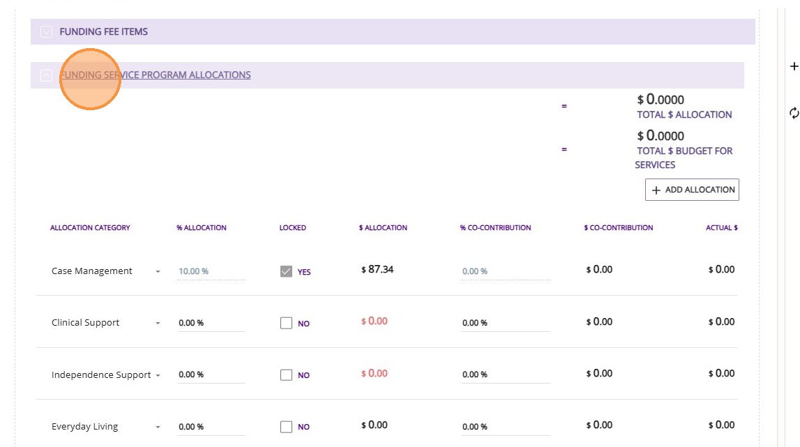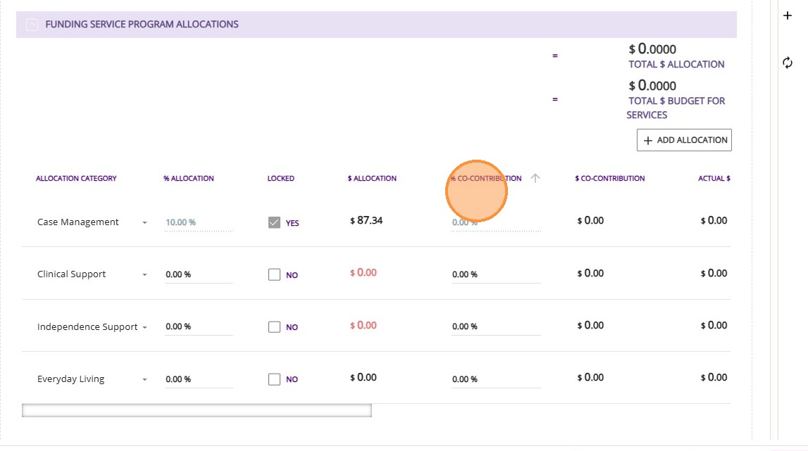 Go to the Funding Service Program Allocations. In this section, you can manage both the allocation of funding and the co-contribution rates.