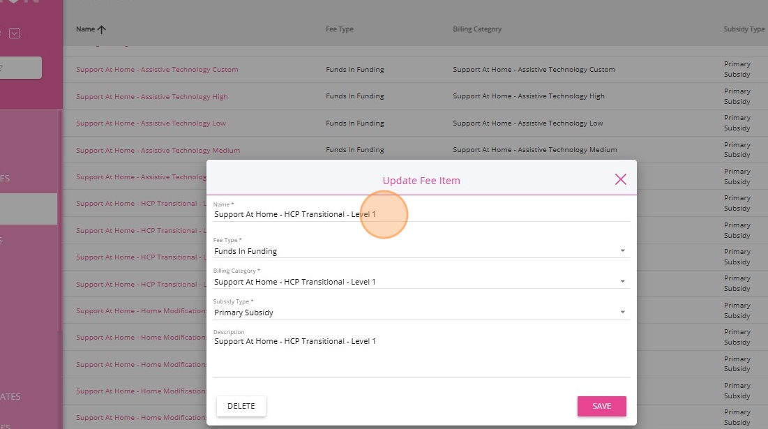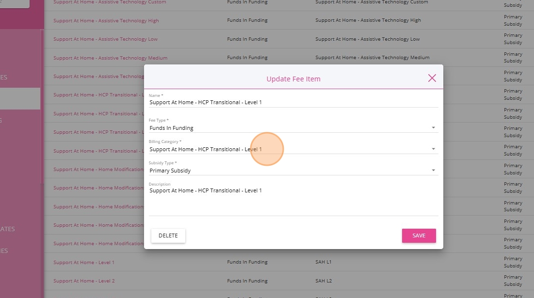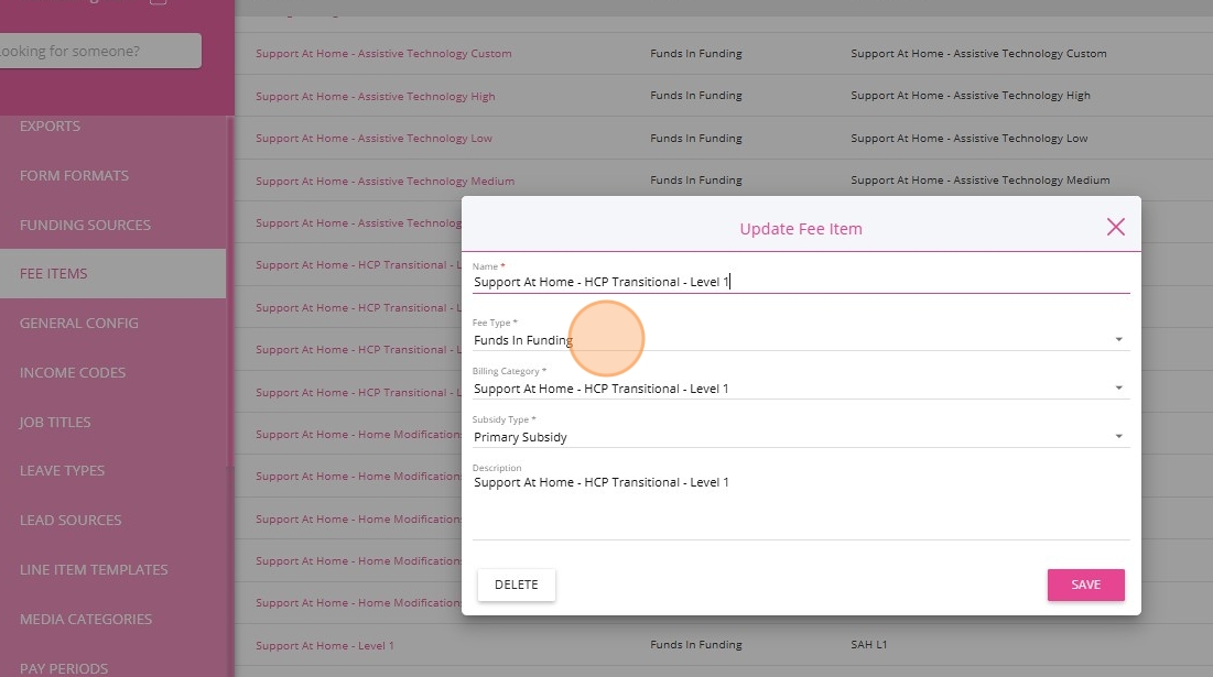 3. You can create a new fee item to align with Support at Home. For example, Support at Home - HCP Transitional - Level 1.