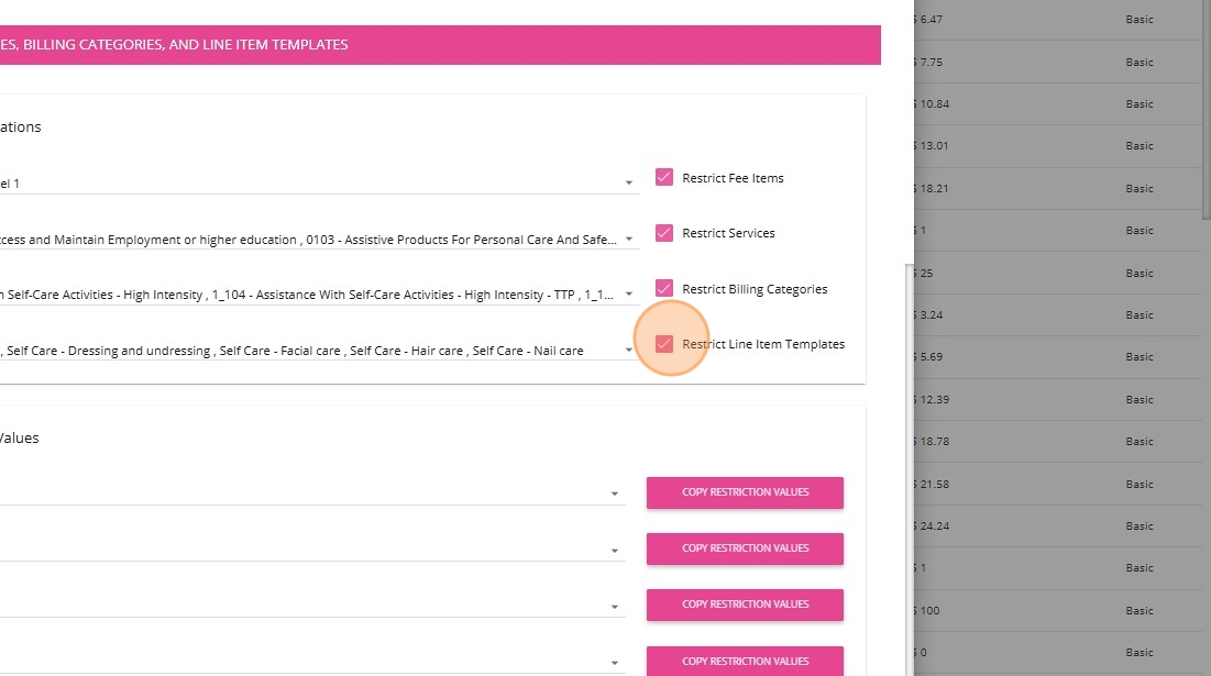4. Manage restrictions on line item templates to ensure that each type of expense is allocated to the correct funding category and to prevent accidental misallocation by your team. For example, you may want to allow only consumables to be charged against core funding, while restricting assistive technology components to their appropriate funding categories.