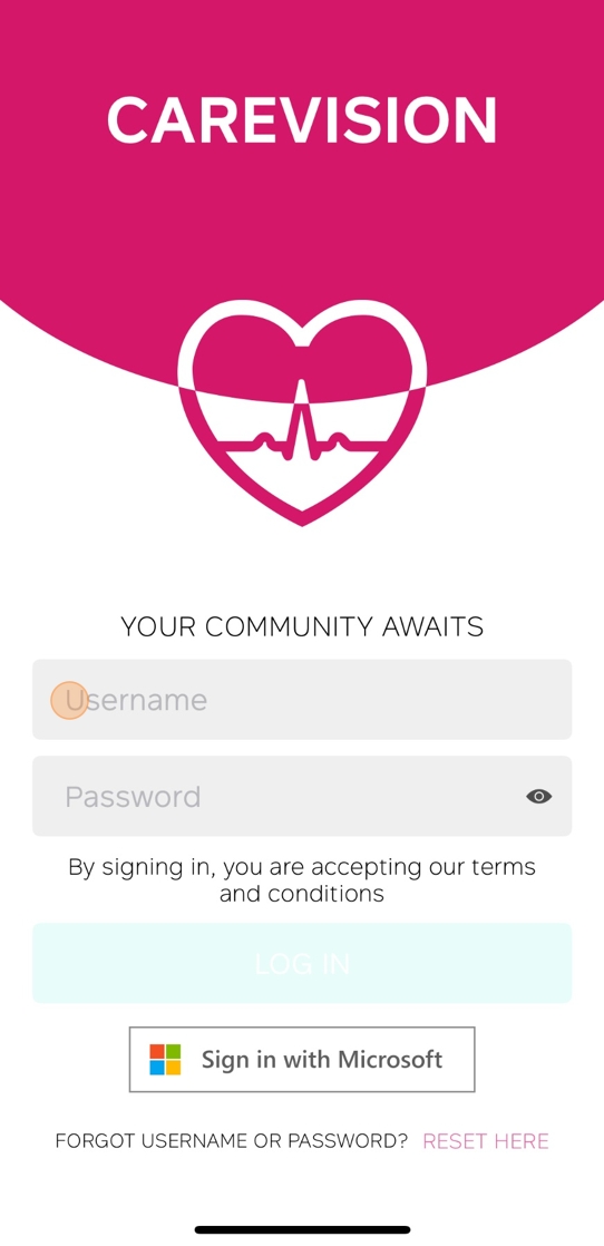 1. Log in to the CareVision Mobile Plus App using your field staff member credentials.
