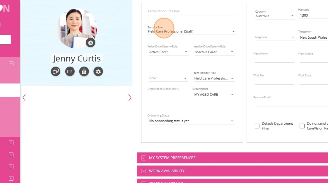 2. The security role of the field staff member should be set to Field Care Professional (Staff).