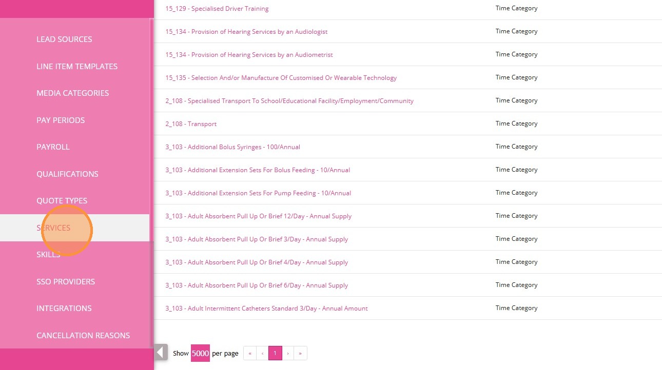 1. In the left navigation pane, click Settings > Services.