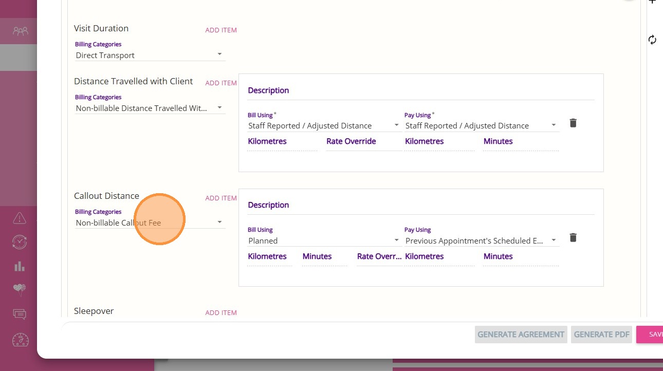 5. For Callout Distance, select the Non-billable Callout Fee billing category.