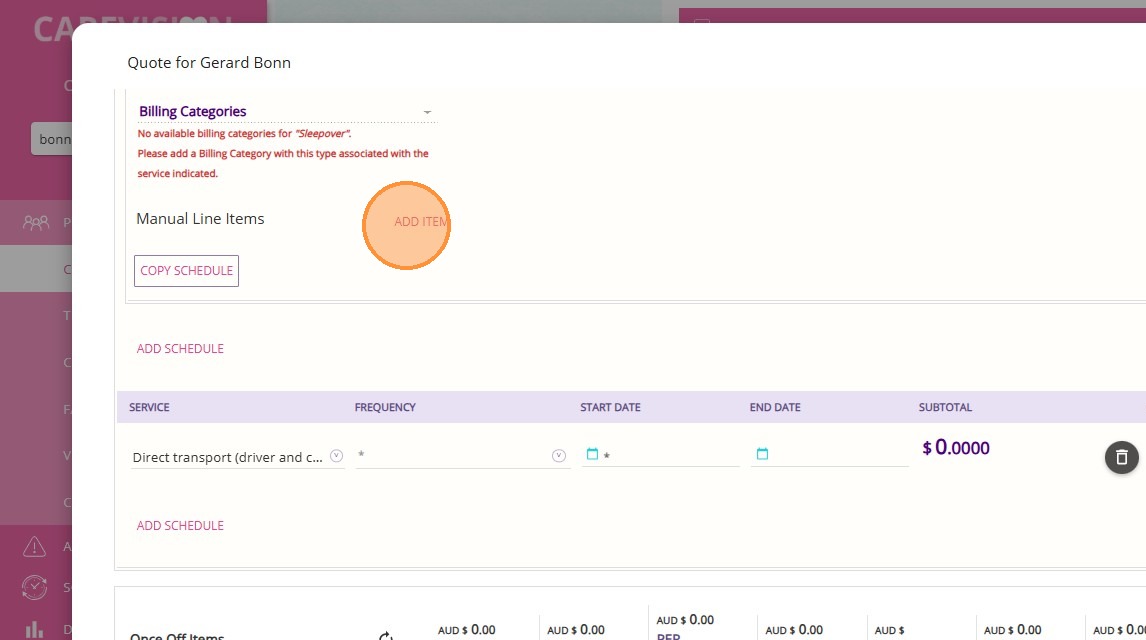6. In the Manual Line Items section, click Add Item.