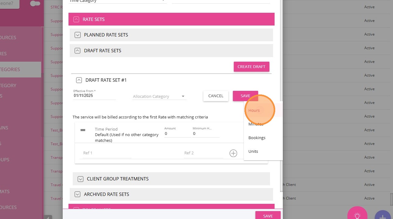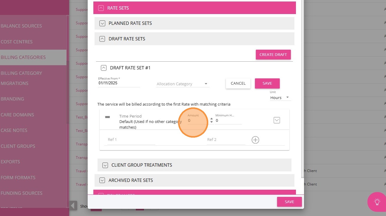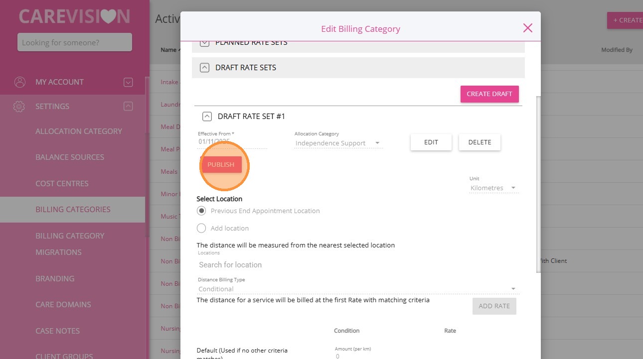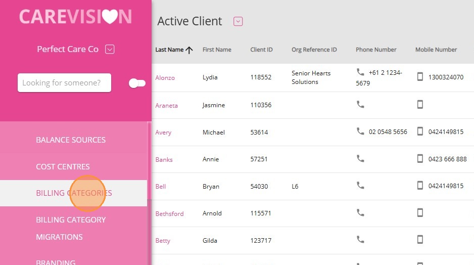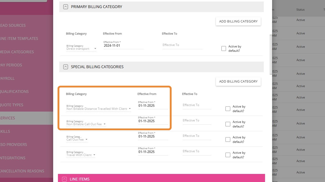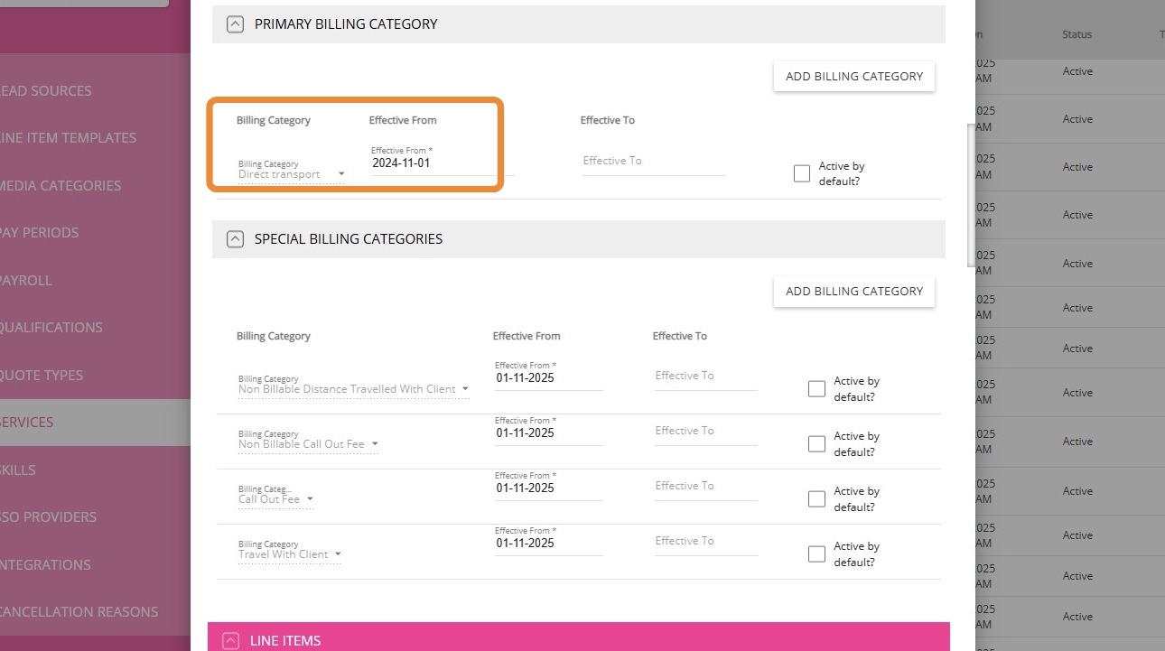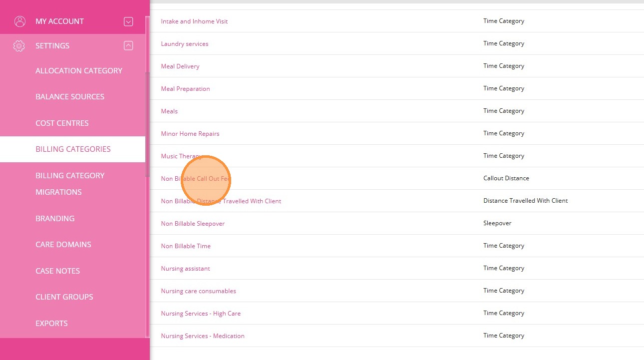 1. In the left navigation pane, go to Settings > Billing Categories.