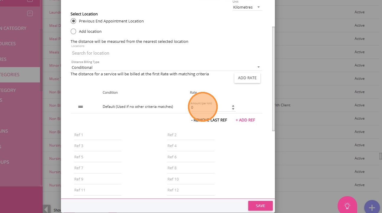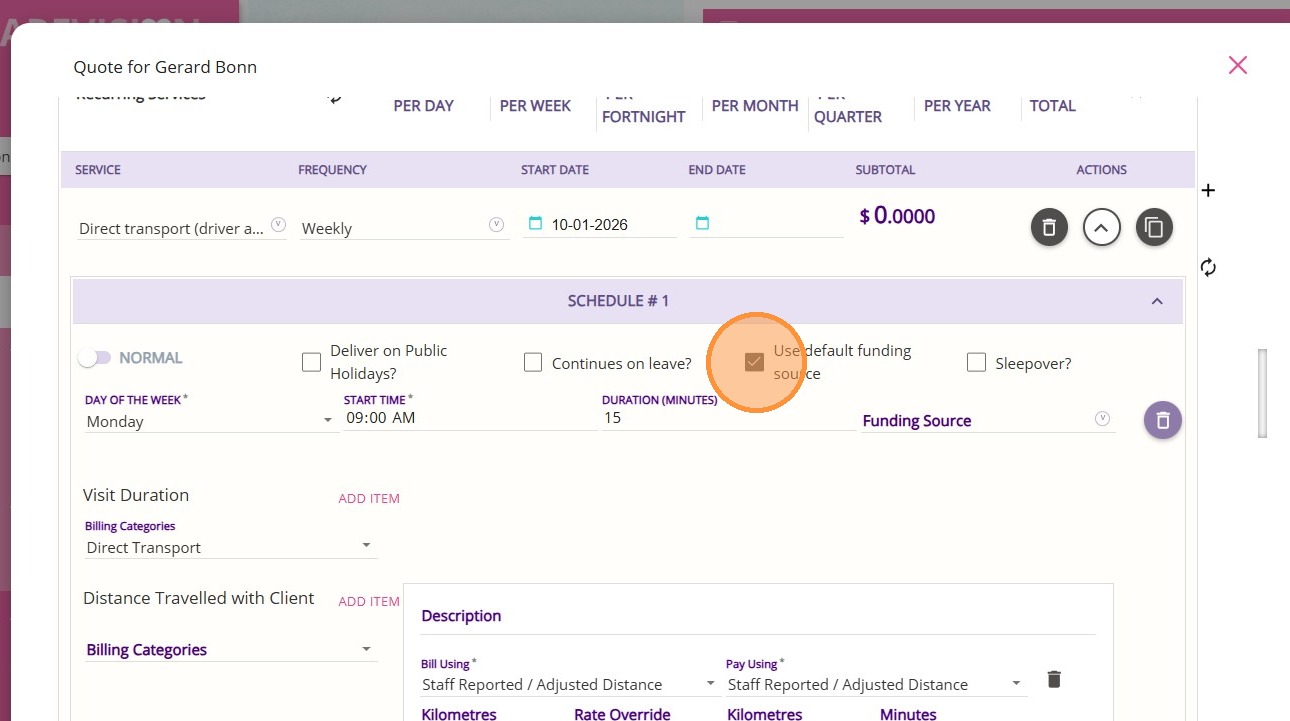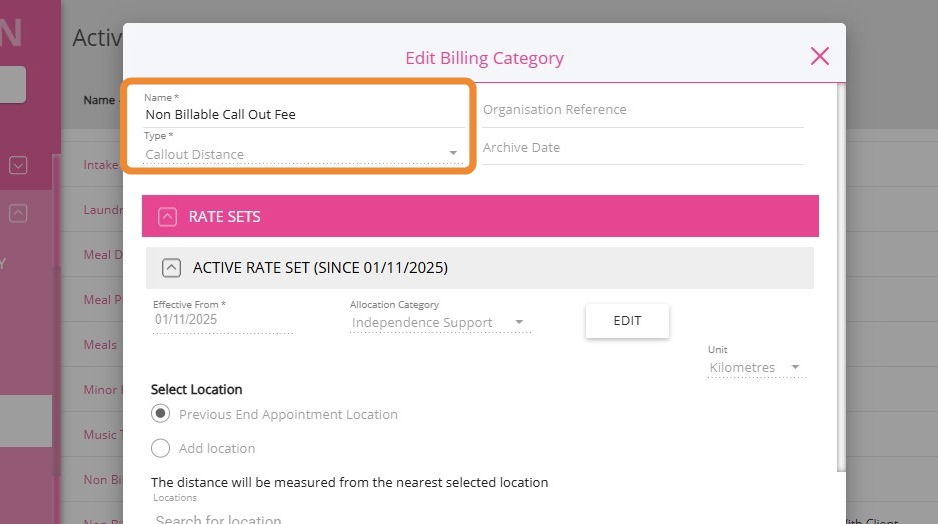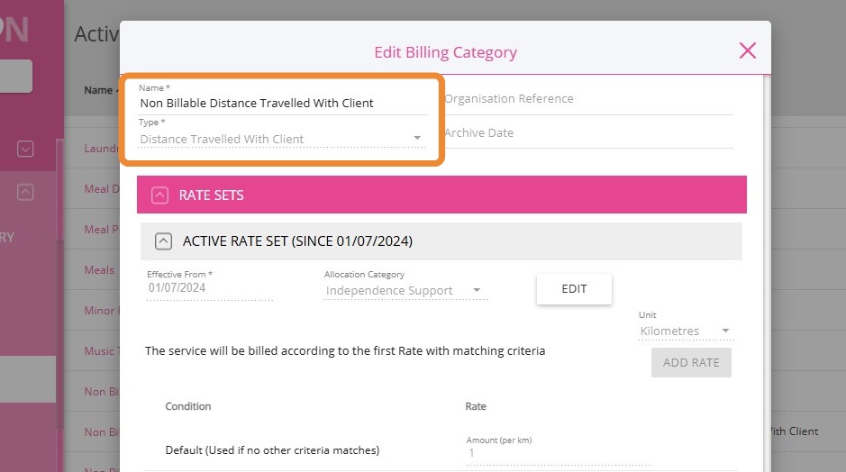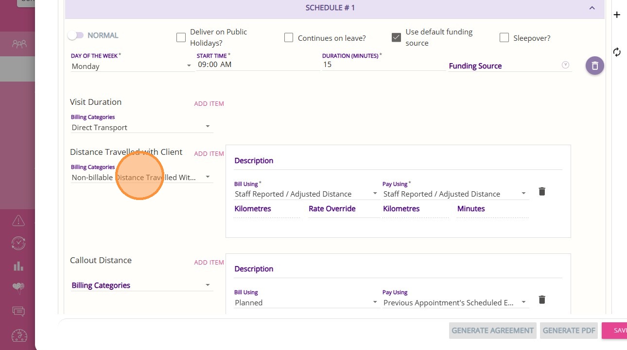4. For Distance Travelled with Client, select the Non-billable Distance Travelled With Client billing category.