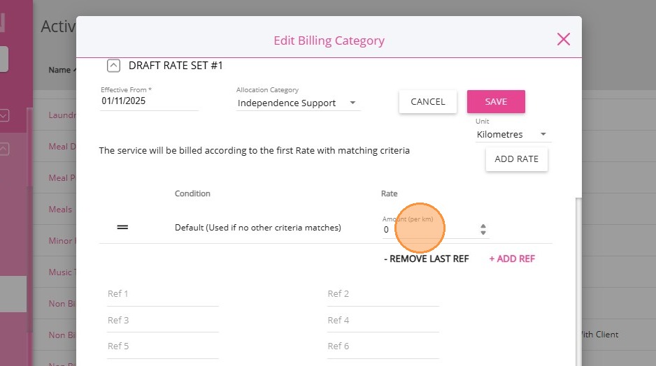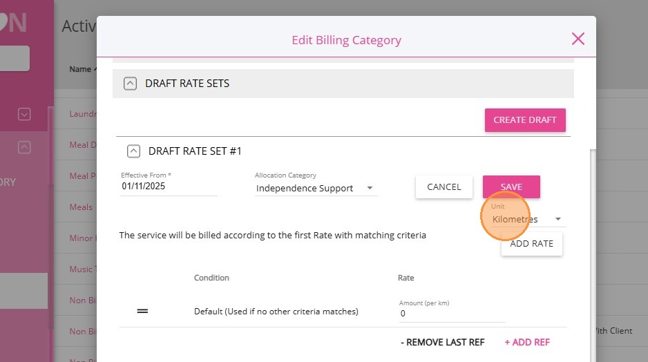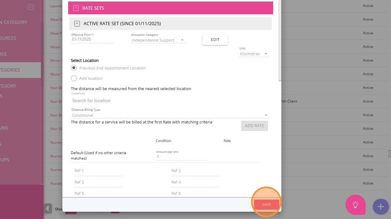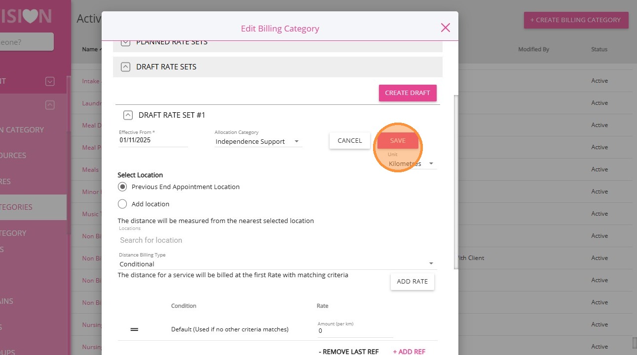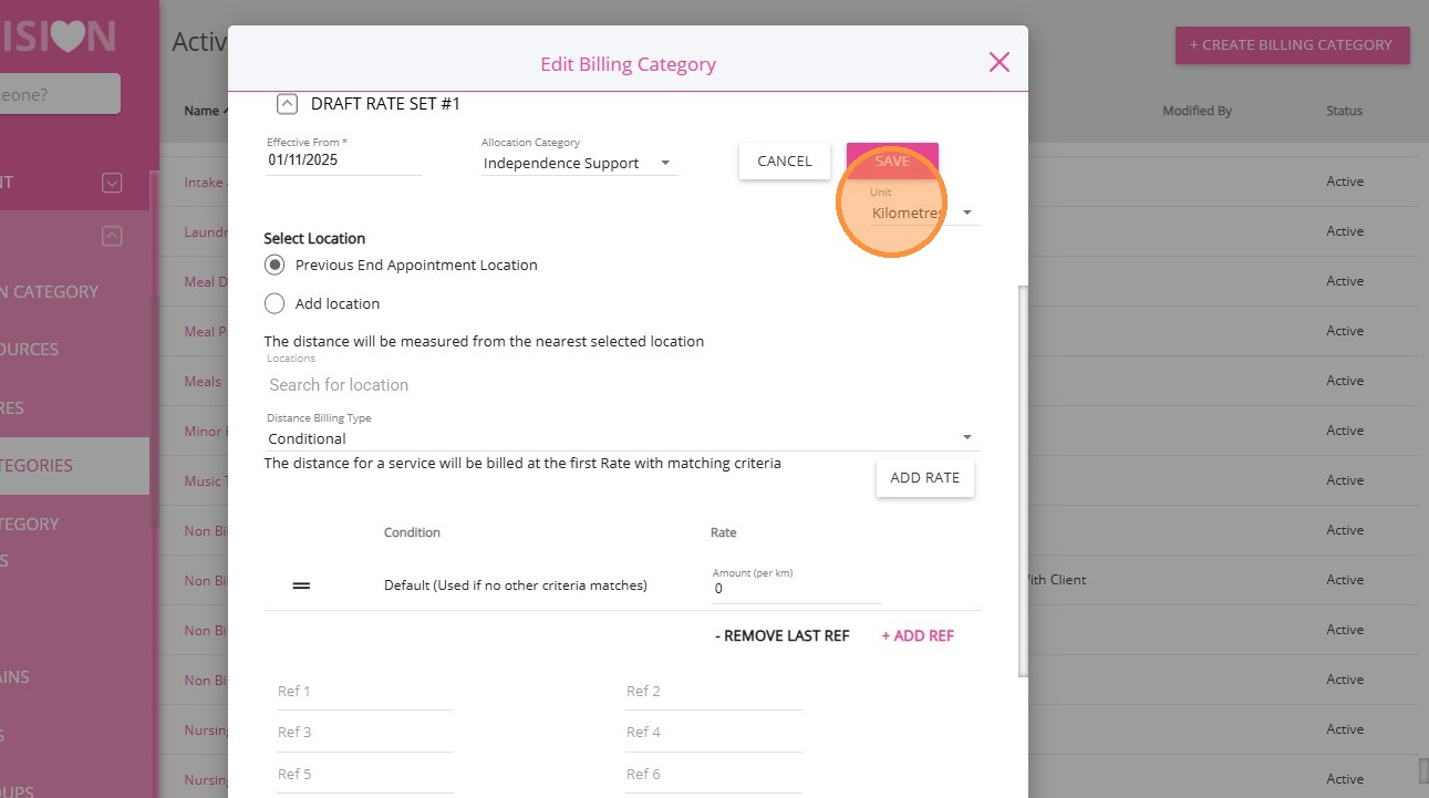 4. For Distance Travelled with Client, select the Non-billable Distance Travelled With Client billing category.