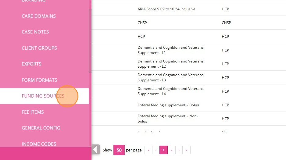 1. In the left navigation pane, click Settings > Funding Sources.