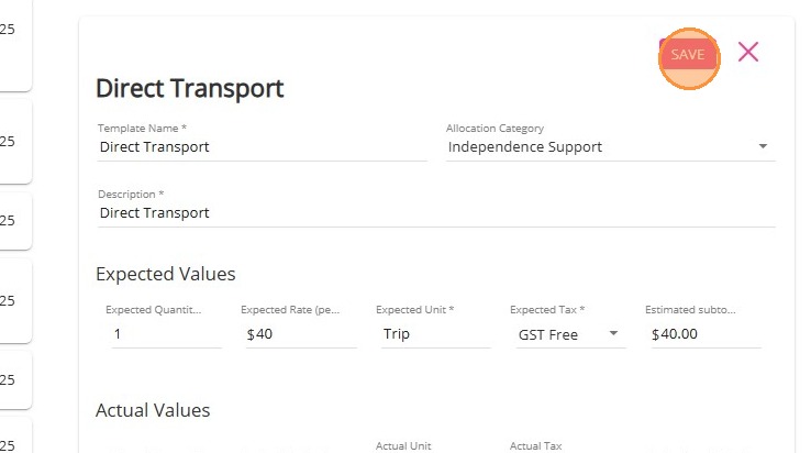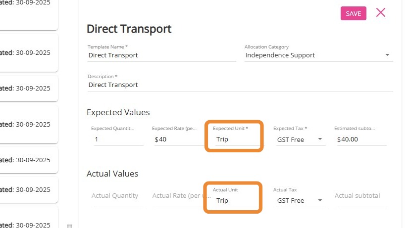 Notes:For taxi vouchers, set both the Expected Unit and Actual Unit fields to Voucher.